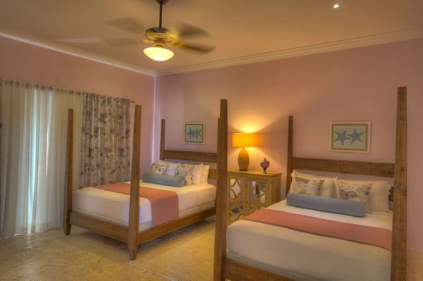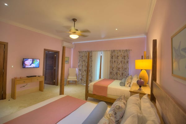 Guests staying within Puntacana Resort & Club will have access to all resort amenities and facilities. Resort amenities and facilities include two golf courses ($), two beach clubs ($), Six Senses Spa ($), restaurants ($), bars ($), and tennis centre ($). 'The more the merrier.' This quote is the best synthesis when you are looking for a thrilling and relaxing time to enjoy with friends or the entire family. All your beloved ones can host simultaneously in this amazing estate of thirteen bedrooms inside Punta Cana Resort, one of the most exclusive gated villages in the Caribbean. This estate is integrated by three independent villas (Arrecife 23, 24 and 25) which are side by side with garden access. Arrecife 23 Imagine yourself in the middle of paradise, a gentle sea breeze against your face while enjoying in one of the most exclusive and luxury places. This four-bedroom ocean-view villa in the Arrecife neighborhood inside the prestigious village Punta Cana Resort is the perfect option to have some well-deserved holidays. From the pool, you can see the Caribbean Ocean and one of the most lush golf courses in the Dominican Republic. Once you enter the villa you'll find an exquisitely decorated foyer that leads you to a large living room and a fully equipped kitchen with an island in the middle. Downstairs you have a bedroom with a king bed, TV and its own en-suite bathroom. When you go upstairs you will find a bedroom with two queen beds, a twin bed, TV and en-suite bathroom, another bedroom is endowed with a king bed, TV and its own en-suite bathroom and, finally you have the spacious master bedroom with a king bed, an integrated hot tub, TV and en-suite bathroom. When you step outside you can cool off in the private swimming pool while making a barbecue and enjoy a drink on the bar in the gallery. Arrecife 24 The building has four bedrooms, two have king beds and the other two have two full-size beds. Fully equipped kitchen, extensive living room terrace and dining room, private courtyard with swimming pool. All rooms include air conditioning, TV, a private bathroom and a walk-in closet. Arrecife 25 The villa has five bedrooms, four with king beds and one with twin beds. Fully equipped kitchen, extensive living room terrace and dining room, private courtyard with swimming pool. All rooms include air conditioning, TV, a private bathroom and a walk-in closet. Please note the Jacuzzi has tempered water, not hot.