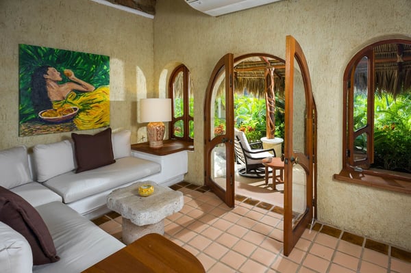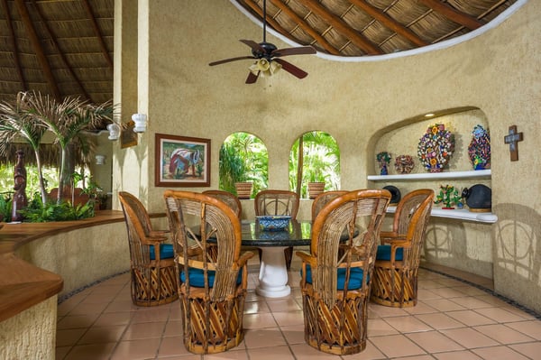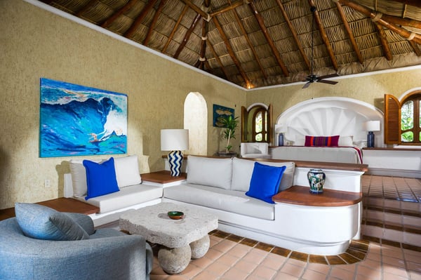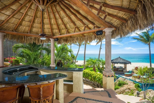 Set on the golden sands of Playa El Tule, Villa Las Rocas welcomes guests into their very own private beachfront resort. This seven-bedroom, 10 500-square-foot home features gorgeous lounge spaces sheltered by grand palapas, a fully equipped ocean view wet bar, a spectacular pool terrace and every comfort and amenity imaginable, all just steps away from the sand and surf of the Sea of Cortez. A winding walkway bordered by palm trees leads to a beautiful wood door carved with the image of a smiling sun. Inside, the spacious open-concept living and dining areas sit under the shade of a massive palapa that opens right onto the pool terrace. A seamless connection between the indoor and outdoor environment lets in the cool ocean breezes and soothing sounds of waves washing against the shore. Design and decor are inspired by the beauty and warmth of Mexico. Vibrant linens, Saltillo tiles and local art pieces, painting, sculpture and tile work brighten every room at Las Rocas. Located in separate casitas, each of the seven-bedroom suites is a lavish private escape where guests can enjoy total rest and relaxation. Entertaining is fun and easy at Las Rocas. The villa's ample lounge and dining areas, resort-style wet bar and gourmet kitchen equipped with professional-grade appliances offer the perfect setting for a casual cocktail party or a delicious five-course meal prepared by the house chef. Indoor living is luxurious, but it is the outdoor spaces that truly make Las Rocas an unforgettable vacation retreat. Swaying palms and a multitude of fruit trees surround the property, creating the ambiance of a lush tropical paradise hidden away from the world. A series of tiered pools cascade down the terrace, ending in a waterfall that flows into Las Rocas main swimming pool. A bridge leads across the pool to a beachfront palapa lounge set right on the secluded sands of Playa El Tule. Take a blissful stroll along the beach, rock peacefully in the seaside hammock, or enjoy a soothing sunset soak in one of the two large Jacuzzis, luxury is limitless at Villa Las Rocas.