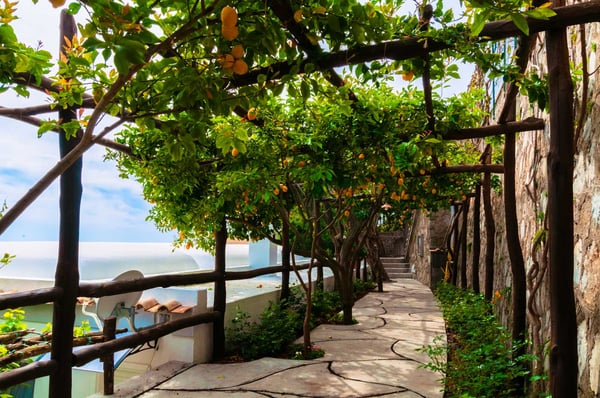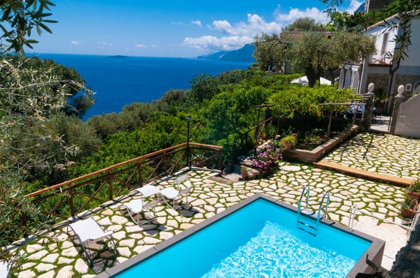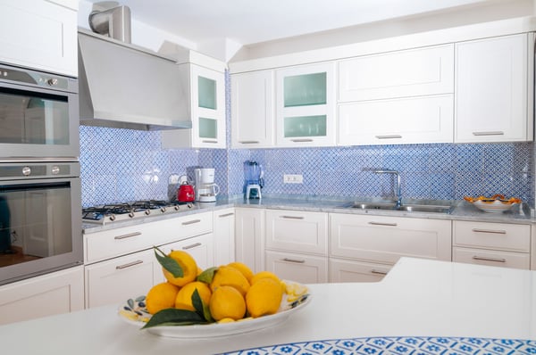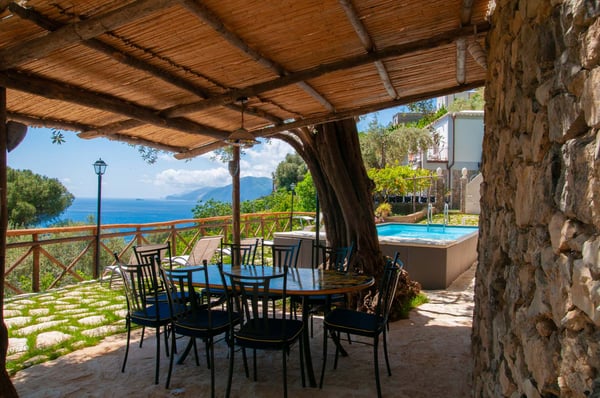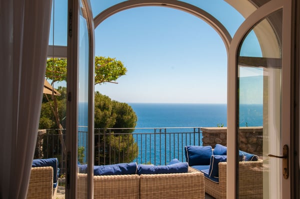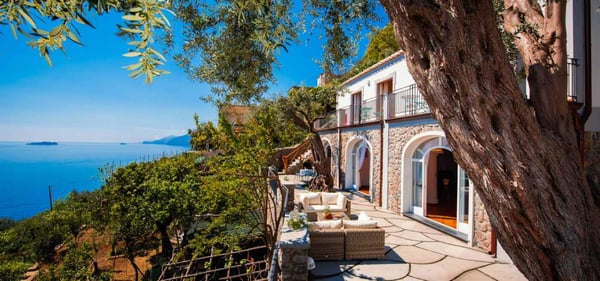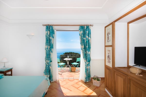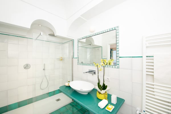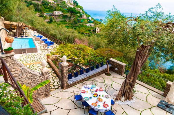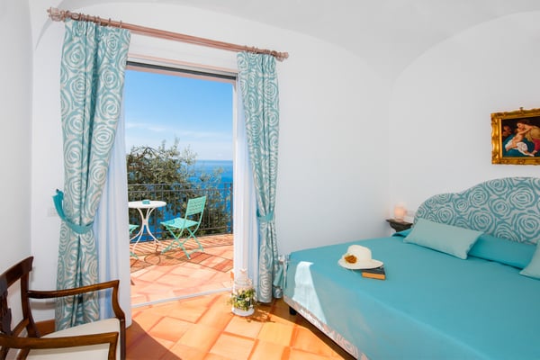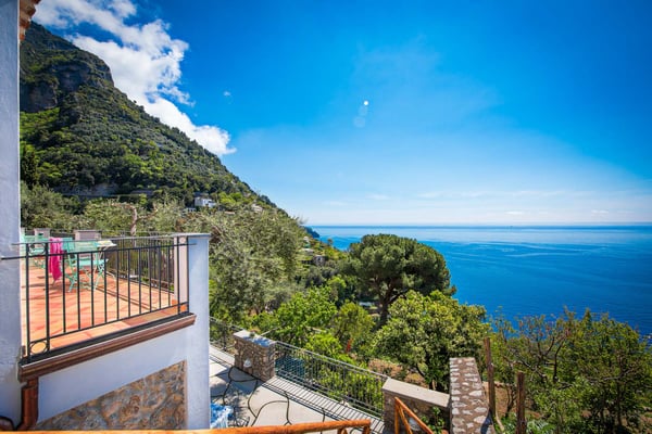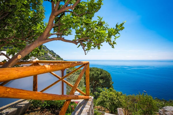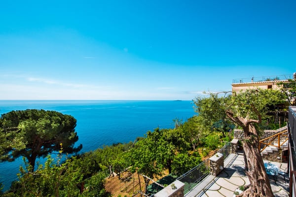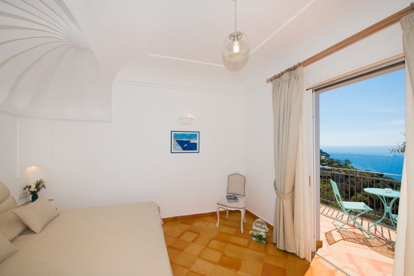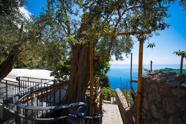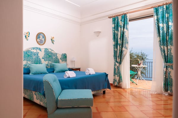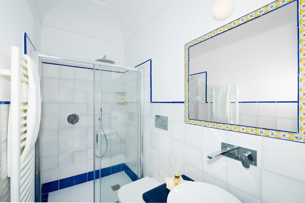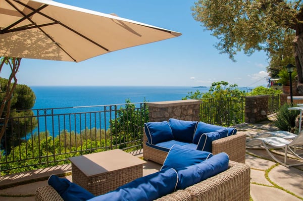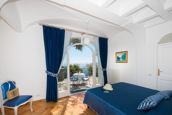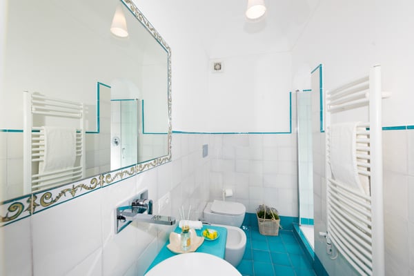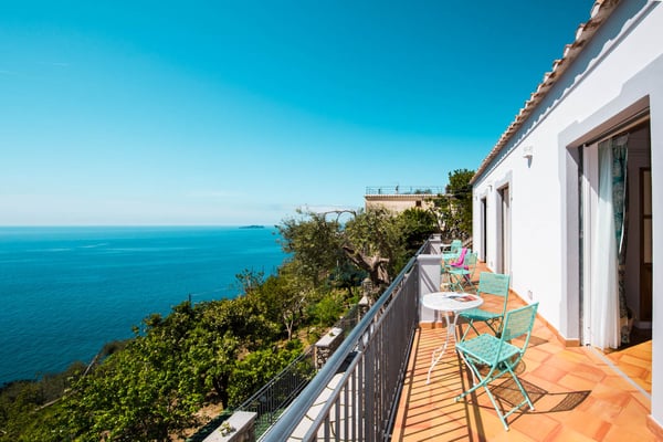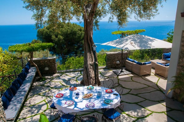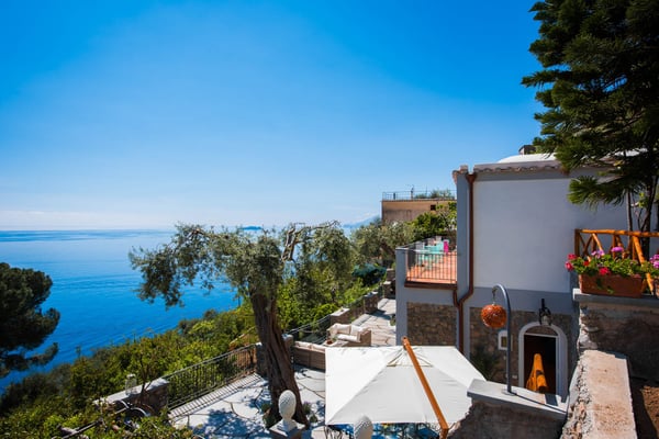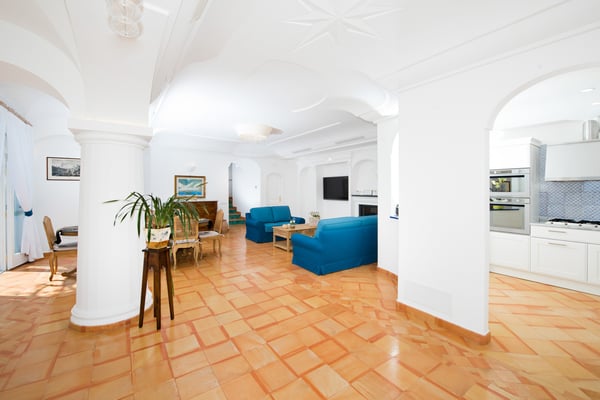 Ambita is a very charming two-story villa set on a beautiful panoramic terraced garden. Just less than 30 steps down the coastal road, and one and a half miles from the center of Positano, it was completely restored and restyled in 2017 to combine elegant aesthetics with comfort and modern amenities. Surrounded by timeless olive and lemon trees, the villa embraces a seaside decor that incorporates a soothing white and blue palette, tiles glazed with the typical Mediterranean colors, and beautiful Neapolitan terracotta floors which derive their unique salmon hue from the composition of the local clay. Nothing restores your body and warms your soul like sitting on the terrace of Ambita while admiring endless sea views and soaking in the balmy, beautiful sunshine of the Amalfi Coast!