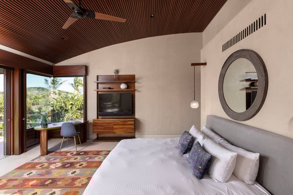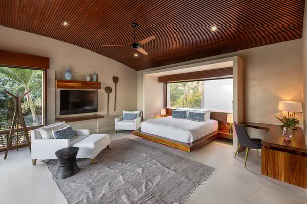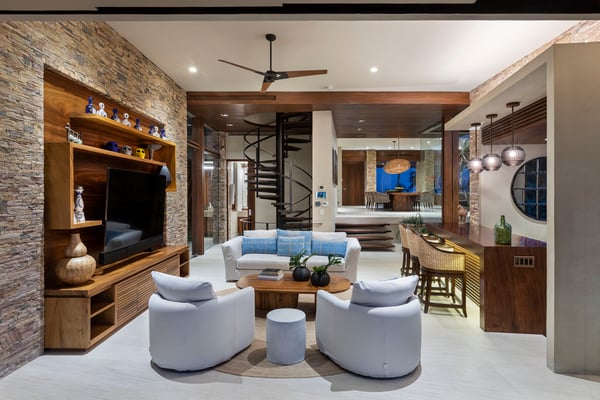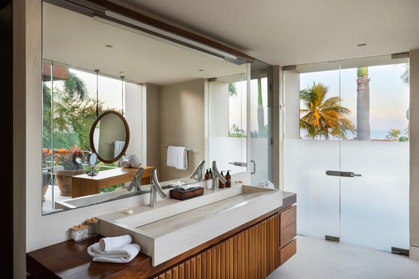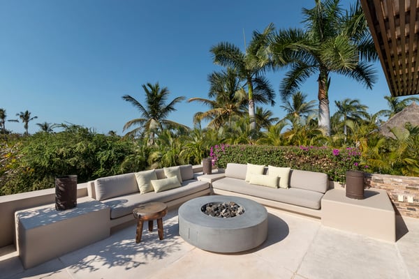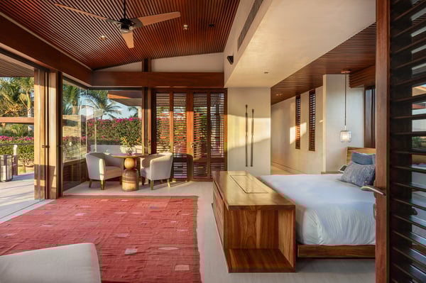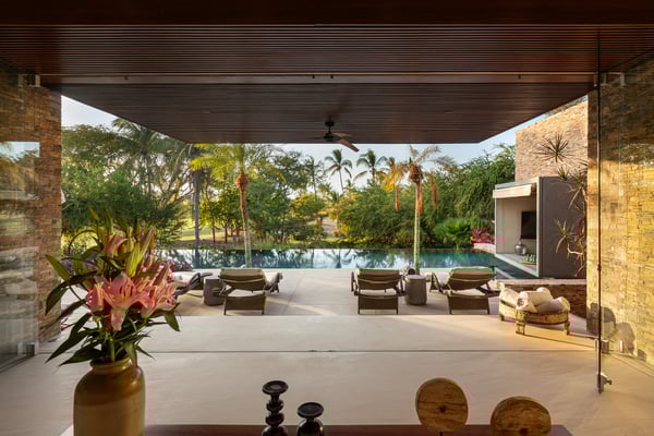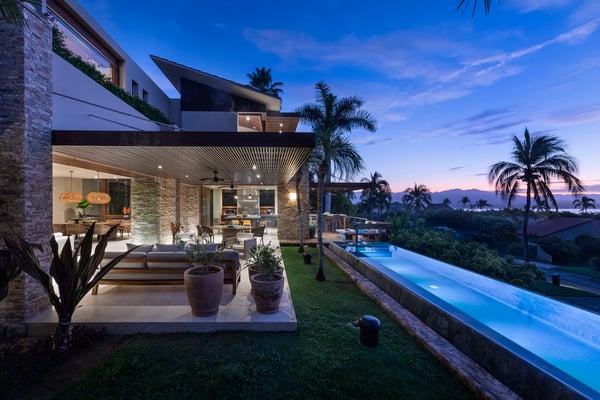 This striking new villa at the quiet corner of Lagos del Mar is the reason people love building homes in Mexico. With a bold and artful use of wood, stone, glass and a subtle and sophisticated color palette, Casa Herradura is the coolest house in the neighborhood. Casa Herradura sits high overlooking the bay and coastline from the Ninth fairway of the Jack Nicklaus golf course at the ultra exclusive Punta Mita Resort, home to the St. Regis and Four Seasons. It features two heated infinity pools, one with a swim up bar, a secret cinema, gourmet kitchen, rooftop fire pit lounge and elegant hideaway bedroom terraces with ambiance and ocean views.