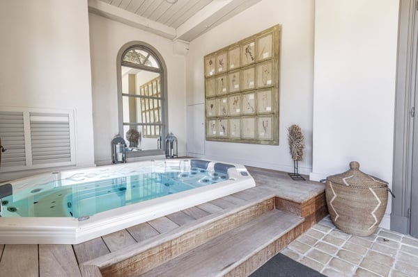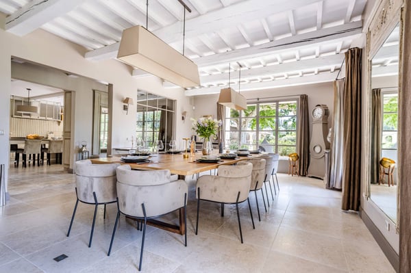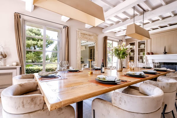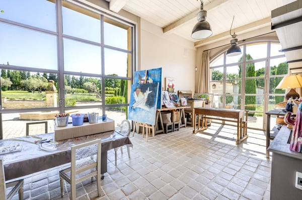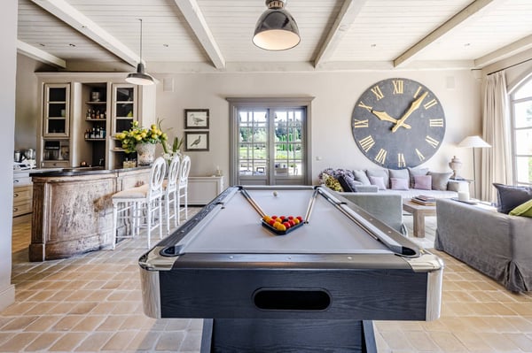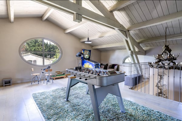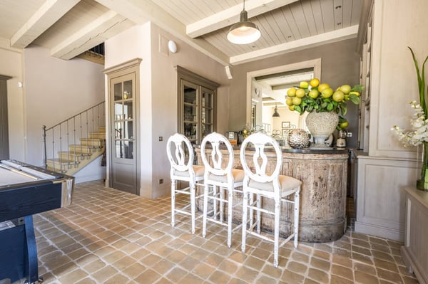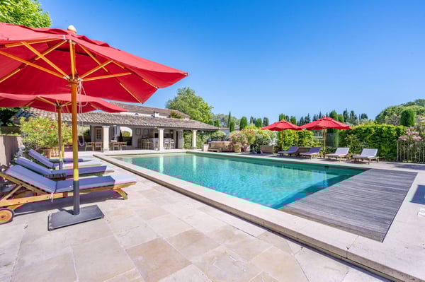 Near St Remy de Provence, this former farmhouse with stable and barns has been renovated and furnished to host families or groups in a friendly atmosphere where every small detail was taken into account. This cozy, partially air-conditioned dwelling offers nine air-conditioned bedrooms, six bathrooms, a heated swimming pool, terraces, a garden, a pool house with a fully equipped kitchen, a Petanque strip, and a tennis half-court. Then in the guest house is the fooseball table, fitness room, and large children's drawing area. A dream holiday for everyone!