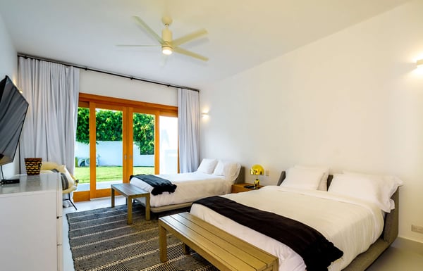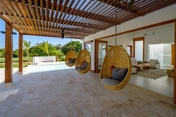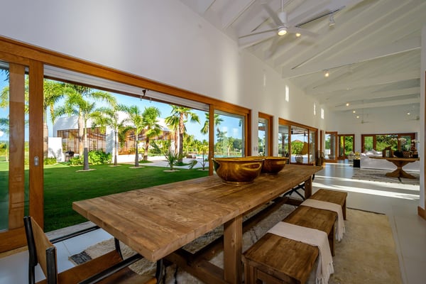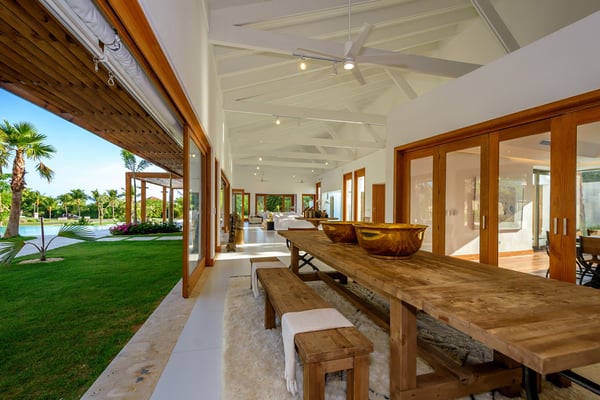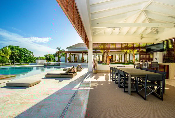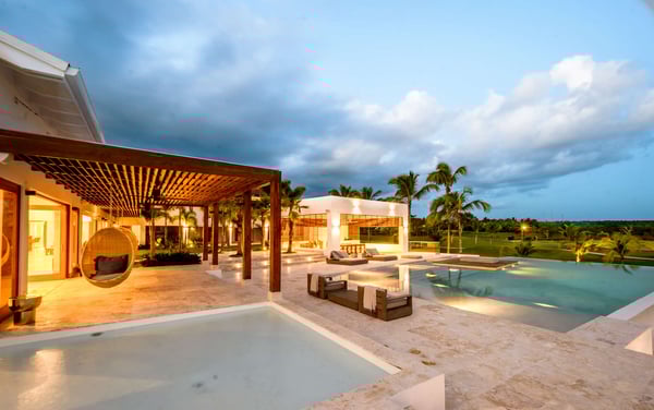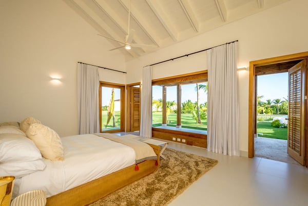 All guests must register with the Casa de Campo Concierge office, and for a small daily fee ($30 per adult per night & $15 per child per night), are granted access to resort areas and amenities. Casa de Campo Resort facilities and amenities include golf courses ($), the fitness centre ($), racquet center ($), restaurants ($) and bars ($). Contact Rental Escapes for more information about pricing. Villa Le Blanc, a masterpiece by renowned Italian architect Gianfranco Fini, combines modern minimalist design with luxurious comfort. Ideally located within walking distance of Casa de Campo Marina and situated on the Dye Fore Golf Course, this villa is a striking example of architectural beauty. Featuring six spacious bedrooms, each with an en-suite bathroom, Villa Le Blanc offers privacy and comfort for every guest. The open layout provides ample space for relaxation and retreat, while the villa’s thoughtful design ensures an inviting and serene atmosphere. Outdoor living is a highlight at Villa Le Blanc. The expansive infinity pool offers a refreshing escape with breathtaking views, while the outdoor bar and BBQ area set the stage for al fresco dining and entertaining. The outdoor dining space accommodates 14 guests, providing a picturesque setting for memorable meals under the Caribbean sky. For indoor dining, the air-conditioned interior dining area also seats 14, combining elegance and comfort. For entertainment, the villa boasts a theater room with a wide-screen projector, offering a cinematic experience perfect for movie nights or watching sports. Villa Le Blanc is a harmonious blend of sophisticated design, premium amenities, and idyllic outdoor spaces, making it the ultimate retreat for an unforgettable vacation in Casa de Campo.