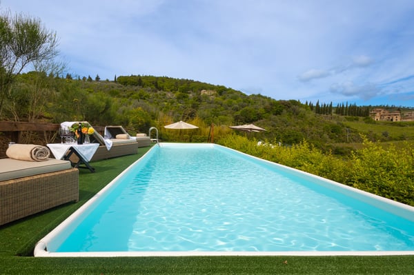The stunning and uber-stylish Villa Fleda is nestled on a 20-acre estate in a famous wine-producing area and is surrounded by manicured vineyards, lush vegetation, ancient olive trees and Mediterranean flora. This luxury property is located in the vicinity of the medieval town of Panzano, in the heart of Chianti (a pleasant hike during the day), perfectly positioned between Florence and Siena. Many more interesting sites, such as Monteriggioni, San Gimignano, Castellina, Radda, and Greve in Chianti, are within short driving distance. The estate where Villa Fleda is built includes also Villa Erinda which can be booked separately or together as an 11-bedroom accommodation. In addition, a newer villa close-by will soon be available to rent.