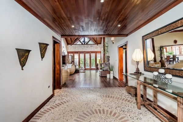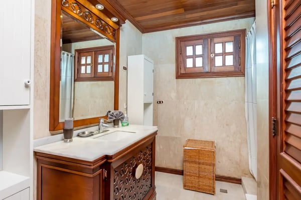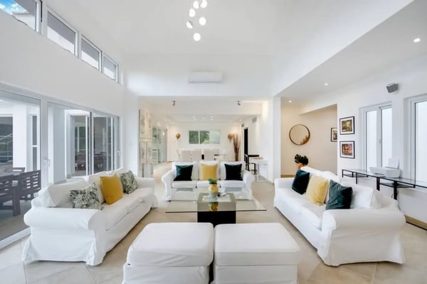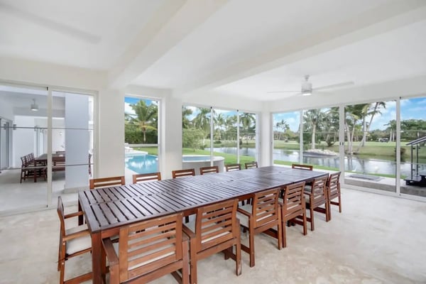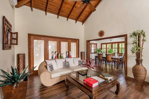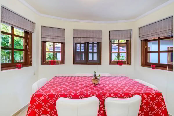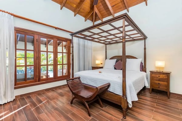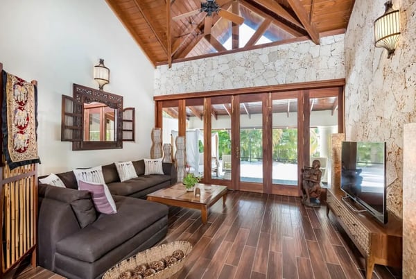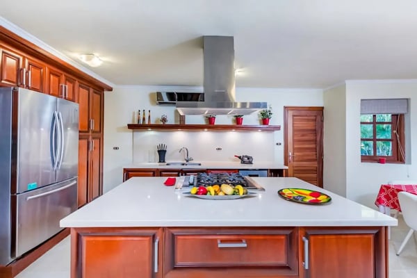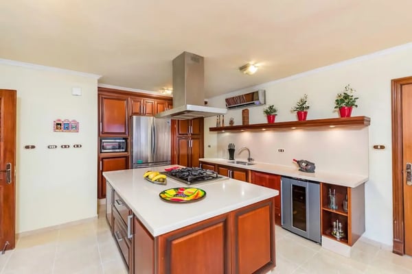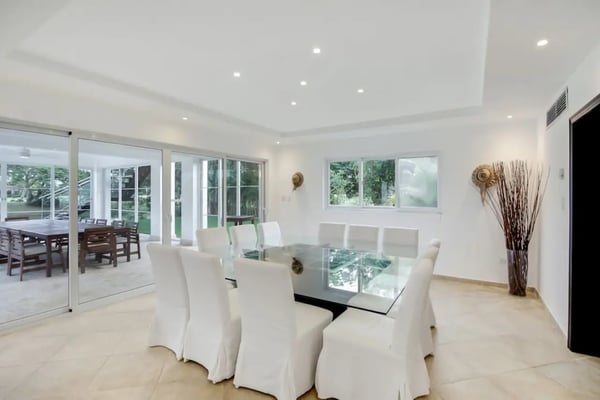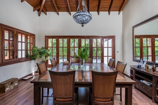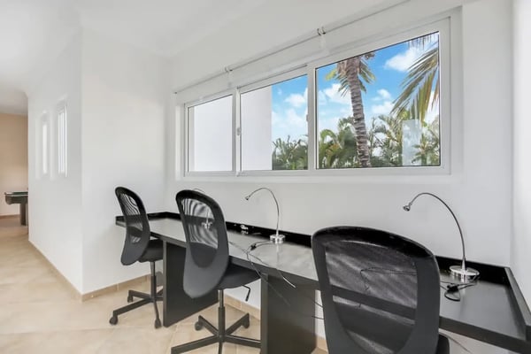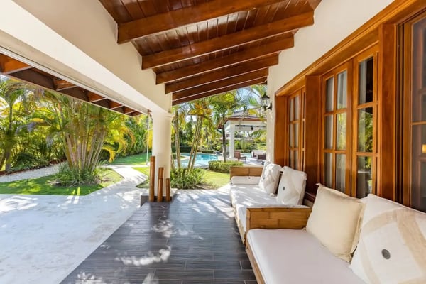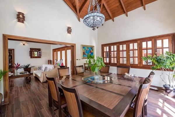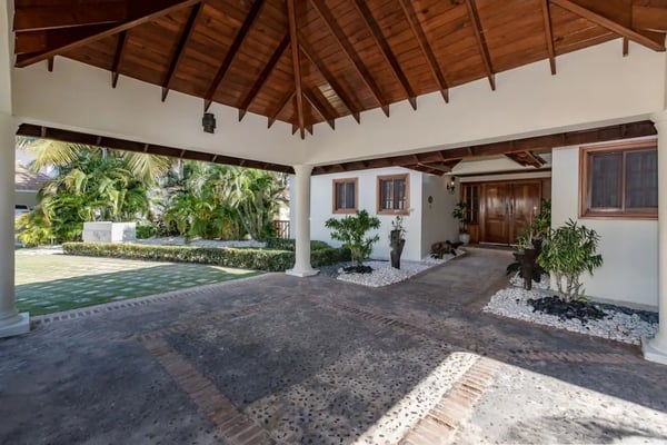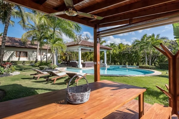 In the heart of Bavaro is Cocotal Golf & Country Club, Punta Cana's premier gated community. Guests staying within Cocotal have access to all Club facilities including the swimming pools, restaurants ($) and bars ($). Club facilities may be closed on certain days for private events. Jellyfish Beach Club & Restaurant is located right on Bavaro Beach. Guests have access to access to all Beach Club facilities including the beach, restaurants ($) and bars ($). Welcome to Mansion Estate! This property is a combination of two-villas located side by side:Scandinavian Serenity Retreat (eight-bedrooms) and Tropical Oasis Villa (four-bedrooms). Scandinavian Serenity Retreat is a gorgeous eight-bedroom villa built over two-levels, with a large pool-side terrace, balconies and a rooftop terrace. You can enjoy your own swimming pool and Jacuzzi as well as a screened, outdoor dining room - perfect for those tropical dinners with your family and friends. The interior is kept in a contemporary Scandinavian style, i.e. simple and minimal decor with all white furniture, which gives the space a clean and modern feel. All eight bedrooms have their own en-suite bathroom, plenty of closet space, TV and air conditioning - and can be set up with either a king bed or two twin beds. Most bedrooms have access to a balcony or to the terrace by the pool. Six bedrooms are located in the main house and two bedrooms are located in a separate (two-level) guesthouse. The villa has two master bedrooms with a large terrace and views of the pool, lake and golf course. The living and dining rooms are the place to lounge and entertain. This space has a 60" TV with cable programming and large, roomy sofas where you can relax and feel at home. The formal dining room is set up with a large dining table that seats sixteen people comfortably. Or, if you want to dine more casually, you can choose to enjoy your meals outside on the screened-in patio, which seats up to 24-guests. The spacious kitchen is fully equipped and designed for a real gourmet Chef - which does come included in your villa rental! Your personal Chef is ready to prepare all of your meals as requested and planned prior to your arrival, so you have less to worry about during your vacation (food and beverages are not included). The villa also has a pool table and an office space with desk and three-office chairs located upstairs in a small nook in the hallway between the bedrooms. Tropical Oasis Villa is a charming single-level villa, which makes it super convenient for multi-generational families and if you are traveling with children. You can enjoy a large garden oasis and private swimming pool with a furnished palapa (an open-sided deck with a roof) island. This is the place to lounge, relax and soak up the sun in complete privacy. The interior of the villa is kept in a tropical, Bali style with lots of rich wood and warm colors. The living room has beautiful, high vaulted ceilings, air condition, ceiling fan, comfortable furniture, TV and direct access to the patio. The living room also connects with the indoor, formal dining room which seats eight-guests. The large kitchen with a cooking island is equipped with everything necessary to prepare your meals during your vacation. However, as you have a chef included with Scandinavian Serenity Retreat, you will most likely be enjoying all of your meals next door. Tropical Oasis Villa has four-bedrooms, all with high vaulted ceilings, air condition, ceiling fan, TV and closet. The master bedroom has a gorgeous king canopy bed and en-suite bathroom with shower. The second and third bedrooms both have a queen bed and en-suite bathroom with shower. The fourth bedroom is the smallest (and coziest) bedroom with a queen bed and a private bathroom with a shower. The outdoor area of the villa is probably where you will spend most of your time. The large patio has nice outdoor furniture with Bali-style sofas where you can relax in the shade and a dining table. From the patio you have access to your private gym and also to the pool area and backyard. The outdoor dining area includes a kitchen with a unique, wood or charcoal-fired Argentinean grill with oven. This casual dining area is covered and seats twelve.