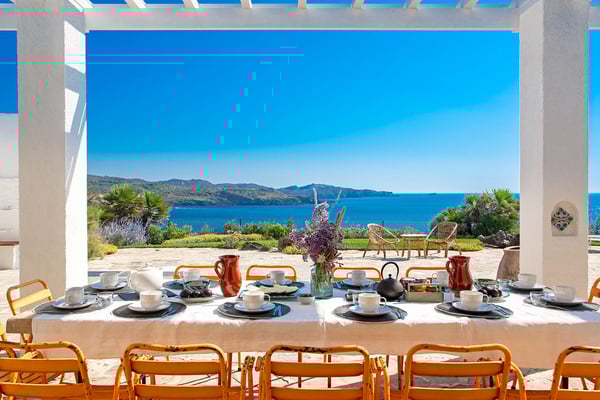 Situated in the North of the Costa Brava, this exceptional seafront villa is fully air-conditioned, and nestled at the border of the charming village of Cadaques within the National Park of Cap de Creus. Dali is a nine-bedroom villa overlooking the Mediterranean Sea and can accommodate up to 20 guests. Exceptionally located, it offers direct access to the sea and full privacy as well as a heated swimming pool. Salvador Dali’s personal manager, the extraordinary ‘Captain Moore’, lived in the house for more than 20 years and welcomed many international artists and intellectuals. The spacious terraced park hides a tiny little chapel and statues in remembrance of Dali and gives stunning views of the Natural Park of Cape de Creus, S’alqueria, and Port Lligat Beach. Villa Dali is a one-story villa perched on top of a rocky foundation, comprising two distinct sections: the main house and four separate exterior bedrooms, each accessible independently. These spaces are seamlessly linked by charming patios and stone stairways. This villa combines modernity, refinement, and simplicity along with a high level of comfort and technology. It was entirely renovated in 2017/2018 by a Spanish architect and French interior designer. Extending over 550m²/ Ground over 10 000m2, Villa Dali offers spacious living areas with nine bedrooms, most of which offer spectacular sea views, Mediterranean-style patios, and large terraces. Registration Number: 2170202530330E2D
