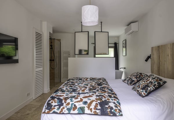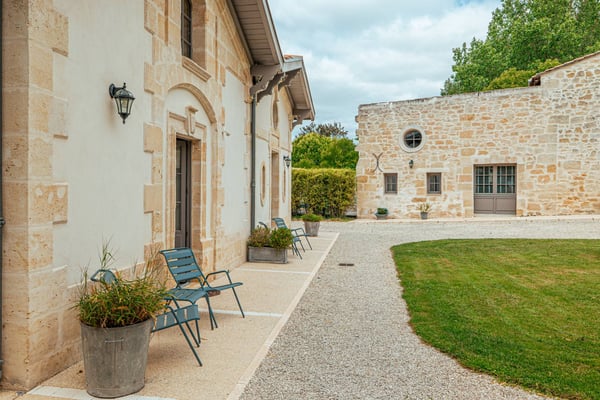 Located in the heart of the Bordeaux vineyards, Clos des Camps is a charming guest house just 30 minutes from Bordeaux, the Citadel of Blaye, and Saint-Emilion. Set within a secluded 1-hectare fenced park adorned with century-old trees, this 19th-century chartreuse offers a private apartment with two bedrooms, as well as five additional bedrooms in the main building. Each room features an en-suite bathroom, independent access, a private terrace, air-conditioning, Wi-Fi, and premium bedding. Clos des Camps can comfortably host up to 15 Guests. The recent renovations seamlessly blend the timeless charm of the past with modern luxury, creating a serene setting that provides an authentic, intimate, and relaxing atmosphere. At Clos des Camps, you'll enjoy an exceptional experience reminiscent of a boutique hotel, complete with personalised services: breakfast featuring local and homemade products, gourmet dinner plates, aperitif platters, a 14-meter heated swimming pool set within the park, concierge services, in-room massages, and electric car charging stations. While situated in a tranquil countryside setting, the property offers quick access to the remarkable points of interest in the Gironde: the Pair Non Pair cave, chateaux and vineyards, Bordeaux, Saint-Emilion, and the Citadel of Blaye. The Arcachon Bay and the Dune du Pilat are also just an hour drive away, making it an ideal base for exploring the region.