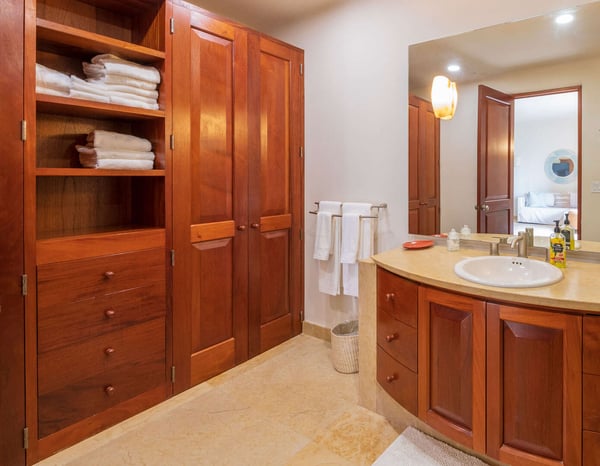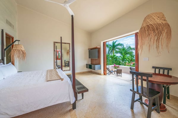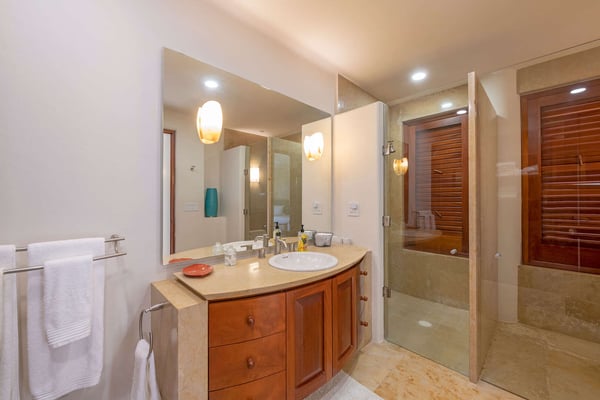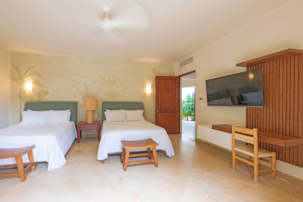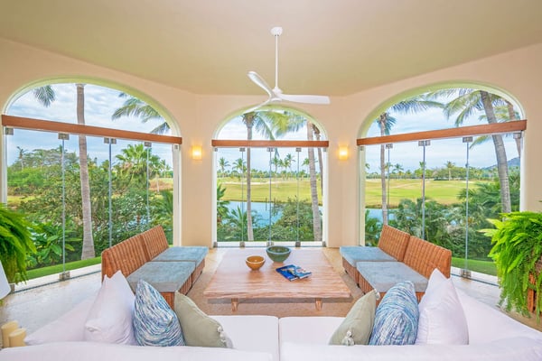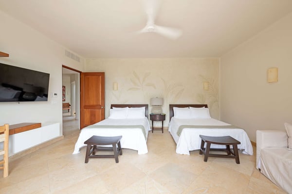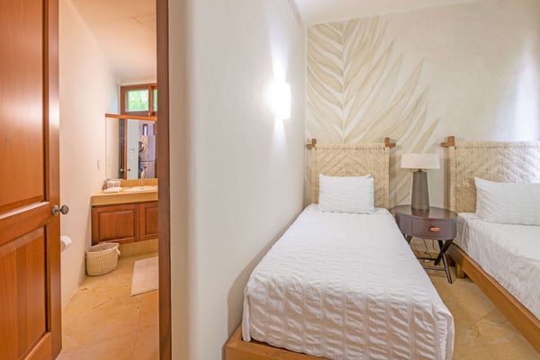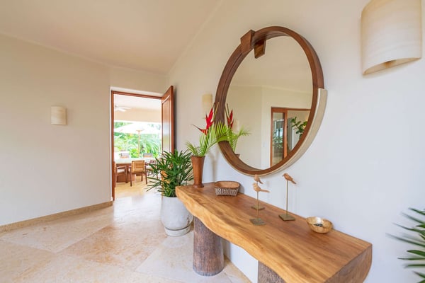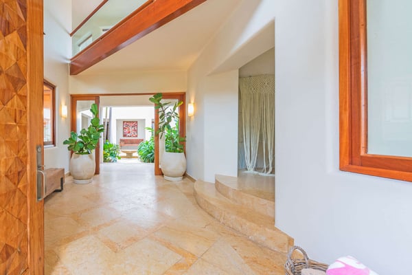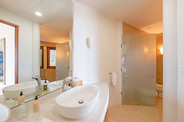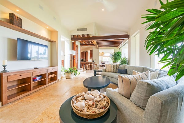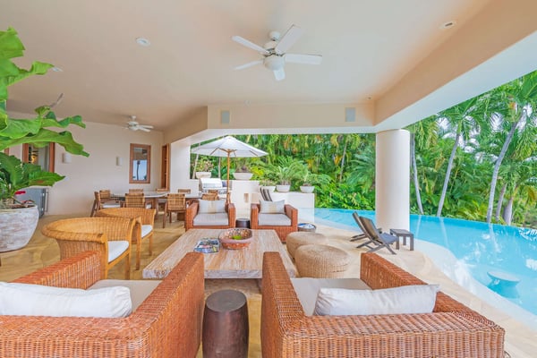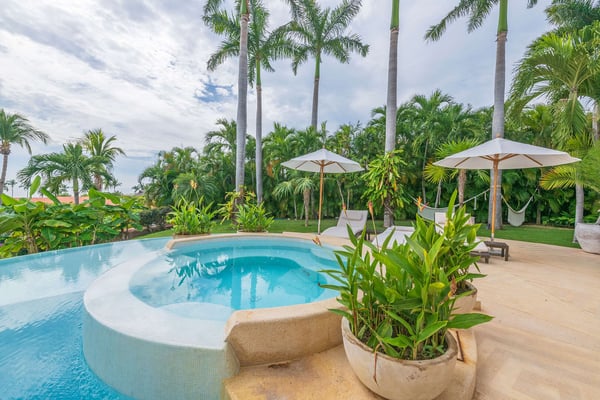 The Premier Golf Membership grants access to Pacifico Golf Course ($), Bahia Golf Course ($), the Tennis Centre ($), the Fitness Center ($), El Surf Club based on min. consumption fee ($), St.Regis Beach Club based on availability and min. consumption fee ($), Pacifico Beach Club, Sufí Ocean Club and Kupuri Beach Club. Contact one of our Villa Specialists for more information. Villa Alamanda is a magnificent 9,500 sq. ft. estate nestled on a half-acre within Punta Mita Resort’s prestigious Lagos del Mar community. The centerpiece is an extraordinary 85-foot infinity pool offering sweeping ocean views and Puerto Vallarta skyline. The grounds feature meticulously maintained lawns and tropical gardens that complement the villa’s architecture. Positioned near the town of Punta Mita, guests enjoy access to four private Resident Beach Clubs, two Jack Nicklaus golf courses, a ten-court tennis center, and a comprehensive fitness facility, all within walking distance. Villa Alamanda perfectly balances tranquility with activity, suitable for both peaceful retreats and active adventures.