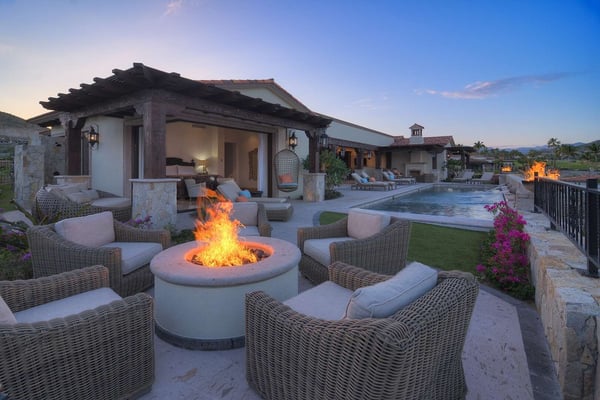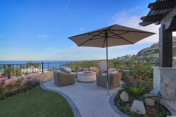 Casa Bella Villa, a spacious six-bedroom sanctuary perched over the Sea of Cortez in Los Cabos, offers a blend of comfort and luxury. Designed with a contemporary flair and colorful local influences, the villa stands out with its retractable floor-to-ceiling windows in most rooms, letting guests enjoy stunning panoramas. The kitchen is a food lover’s dream, equipped with top-tier appliances and a granite prep island, all complemented by a formal dining area. Its outdoor area features a pool, umbrella-shaded chaises, and enchanting fire pits, perfect for relaxing or entertaining. A highlight of the villa includes an outdoor living space under the eaves that doubles as an outdoor terrace, offering an expansive dining table set amidst the calming sounds of the sea.