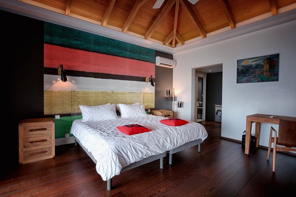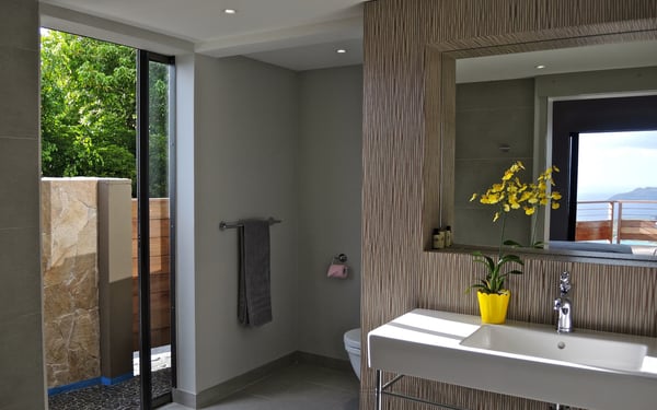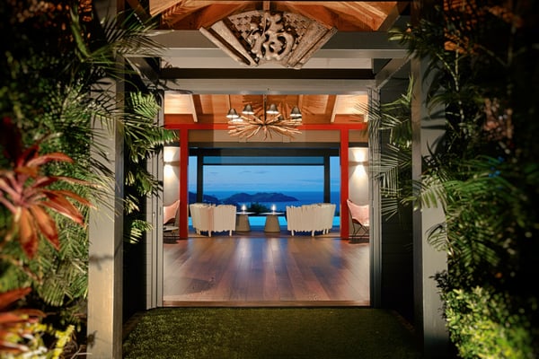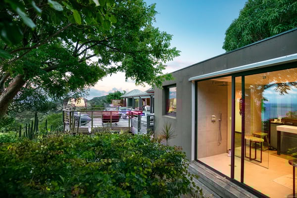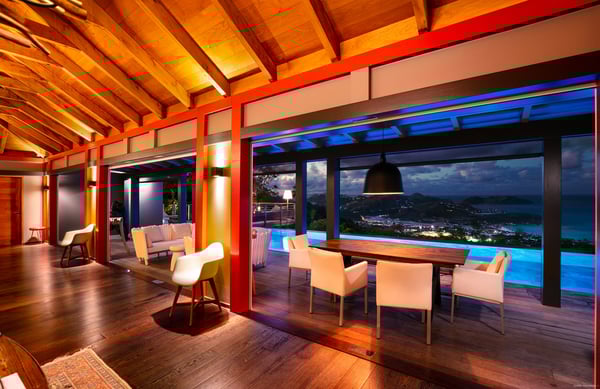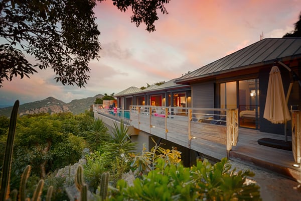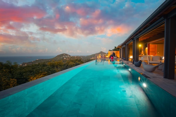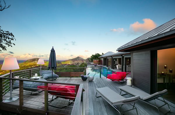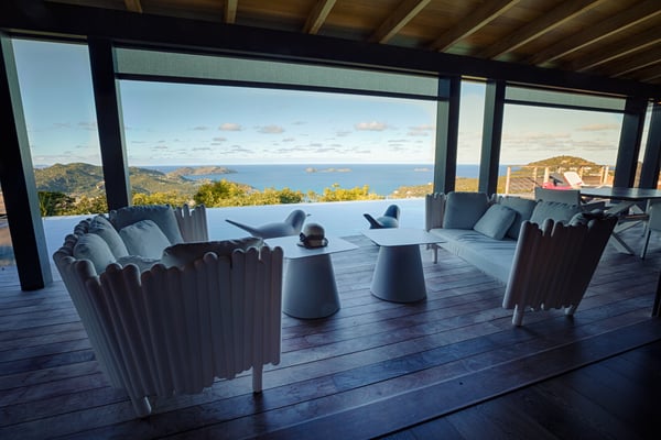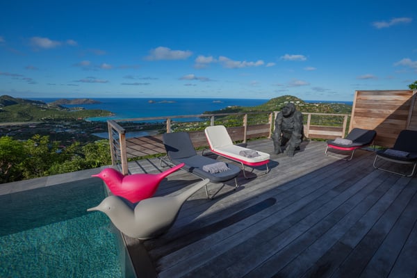 Located in Lurin, the sumptuous Villa Moh is a dream come true. Nestled in the heart of the lush vegetation of St Barths, this luxury home offers a breathtaking view over the ocean, and welcomes you in four beautiful air-conditioned bedrooms for an unforgettable stay in the Caribbean. Built in a contemporary style, Villa Moh offers the utmost luxury and quiet you could wish for, facing the breathtaking view over the Saint-Barth’s waters. You'll marvel at the décor as soon as you enter the refined living room, which is composed of a comfortable lounge with sofas and benches. Under the vaulted ceiling with driftwood fixtures, some red hints bring modernity and originality to this living room where you will enjoy reading and resting. The dining room which can accommodate up to six guests is composed of a beautiful dark wooden table that contrasts with the striking white chairs with geometric lines, facing a large bay opening onto the breathtaking view. The kitchen with breakfast bar is very well equipped for the preparation of meals and cocktails, in an atmosphere perfectly mixing the warmth of wood and the modernity of materials such as stainless steel, with an original selection of lovely objects. At the front, facing St John's Bay, a magnificent 15-metre mirror pool offers a great palette of sparkling reflections that you’ll admire from the sunbeds set up on the deck. An outdoor dining room for six guests is also available under the covered terrace for alfresco dinners in the gentle trade winds. Take a breath, everything is quiet and beautiful. The luxury Villa Moh welcomes you in four air-conditioned bedrooms with ocean views. All are furnished with king-size beds and tastefully decorated. Each bedroom has its own bathroom for utmost privacy. They also open onto the terrace with pool, making it possible to enjoy the beauty of the environment and the mild Caribbean air at any time. Elegant and modern, the splendid Villa Moh is the perfect setting for a wonderful stay in St Barths.