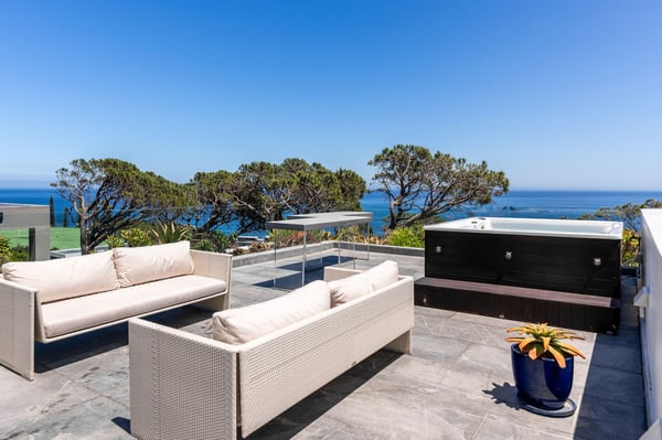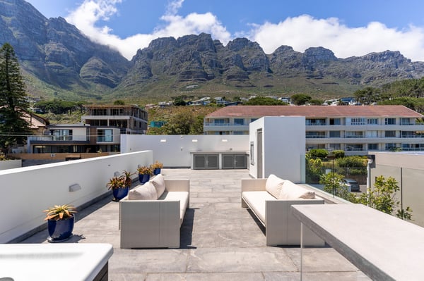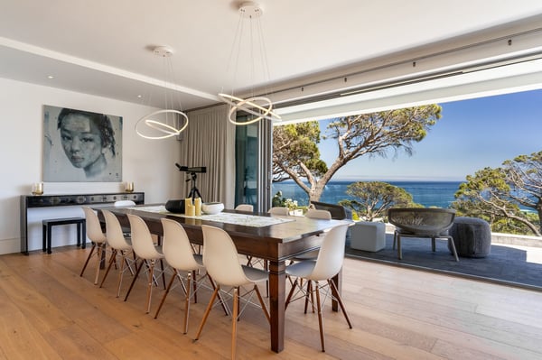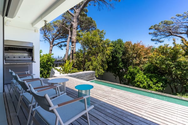 Villa 31 is a spectacular property with panoramic views of both the ocean and the mountain range. Centrally located in Camps Bay, you can walk to Camps Bay Beach and visit the bustling Camps Bay strip to enjoy its choice of restaurants, bars, grocery stores and boutiques. The open-plan living area is stylishly furnished, adding to your experience of easy holiday living. Here, dining, relaxing and socializing outdoors all flow effortlessly together. Perfect for the summer, glass doors open onto the deck. Invite guests to watch the sun go down over the ocean, enjoy an alfresco meal, or take part in a uniquely South African 'braai' (that's a barbecue!). Guests can take up a sun lounger and while away their holiday, reading and sun-tanning alongside the pool. You will love Villa 31's various indoor and outdoor spaces, well-equipped kitchen and separate lounges. During the summer months, breakfast, lunch and dinner can be enjoyed outside on three different levels. Ideally located, private villa in Camps Bay with full sea view.