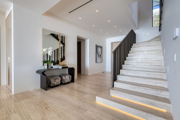 Welcome to a sanctuary of unparalleled luxury with our exquisite oceanfront villa, designed to cater to the most discerning tastes. Each of the three primary bedrooms, including two on the second floor and one on the first, feature full ocean views, king-sized beds, automated sheers, shades, and lighting systems, as well as in-suite bathrooms equipped with steam showers, expansive closets with some automated hanging racks, and hidden TVs and music systems for ultimate privacy and comfort. The second-floor primary suites open to a sprawling terrace with automated sun screen protection and multiple seating areas, all overlooking the mesmerizing ocean. The first-floor primary bedroom offers direct access to a sun-protected seating area with stunning ocean views. The Villa also boasts two additional bedrooms, one with a queen and the other with two queen beds and each with bathrooms. Other areas include an additional family room with TV and music. This villa’s grandeur extends to its expansive open-plan first floor, featuring floor-to-ceiling automated doors that reveal breathtaking ocean vistas. Enjoy a state-of-the-art living space with an Eggersmann bar area equipped with top-tier appliances, ice machine, wine storage, and a dining room that seats twelve, adjoining a sophisticated automated kitchen boasting Miele appliances, including an espresso maker, two large refrigerators, freezers, and dishwashers. The robust living room includes a fireplace, TV, and music. An elevator enhances accessibility between floors, adding a layer of convenience to the sophisticated layout. For entertainment, the villa features a game room equipped with three classic, fully restored pinball machines, an NBA basketball shooting game, and a table for two video game console with dozens of video games. The outdoor amenities are equally impressive, featuring a very expansive chlorine-free pool with a swim-up bar, an integrated hot tub, a unique addition is the cold plunge, perfect for a refreshing dip after a sunny day. A complete outdoor kitchen with a pizza oven for gourmet cooking under the stars, adjacent to an oceanfront dining area for 12, plus and adjoining fire pit. Surrounding the pool are automated umbrellas, and shaded dining and lounge areas with ceiling fans that run the entire length of the covered outdoor patio, providing a luxurious space for relaxation and social gatherings.