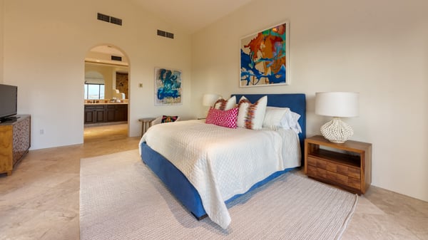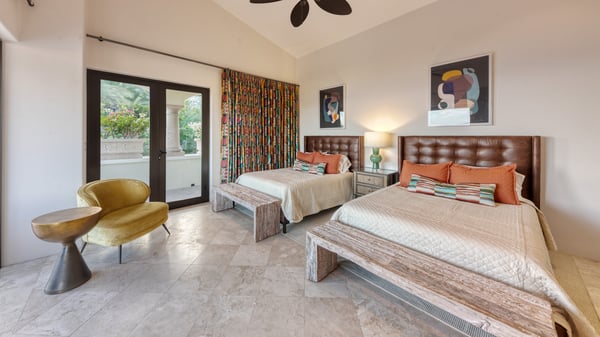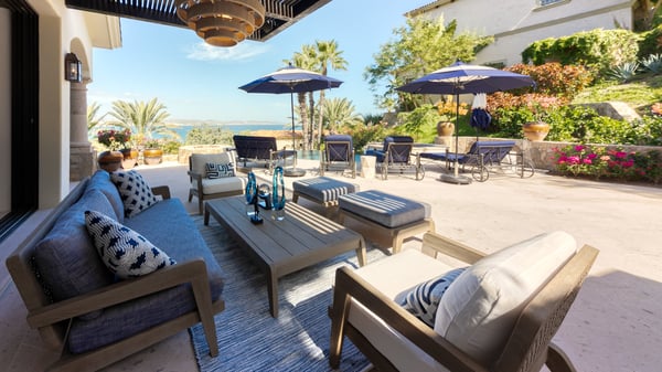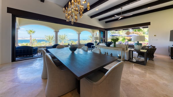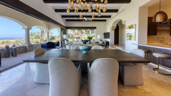 Immerse yourself in unparalleled bliss at Jardín del Mar, a secluded garden villa in Los Cabos, designed to envelop you with the soothing scents of semi-tropical blooms and mesmerizing sea views. Experience the joy of tranquility and leisure, with plenty of room to wander, entertain, or relax in the inviting infinity pool that overlooks the craggy desert coastline of the Sea of Cortez. Enjoy the vibrant blooms of bougainvillea as you unwind in the attached Jacuzzi or gather around the nearby fire pit under a starlit sky. The villa offers seamless integration of indoor and outdoor living, with walls of windows opening up to let the fresh, floral-scented sea breeze permeate every corner. Jardín del Mar extends across 3,600 square feet, offering four bedrooms and four bathrooms, perfect for ensuring privacy and shared joy for up to eight guests. Bedrooms, designed with soft pastel hues, lead to patios and terraces that enhance the villa’s indoor/outdoor allure. The gourmet kitchen, equipped with a wine refrigerator and large appliances, complements the spacious living room with plush furnishings. While the breathtaking view is the star attraction, the alfresco dining area, warmed by a ceramic kiva-style fireplace, and the seductive lounging pods around the crystal swimming pool are equally appealing. Experience the epitome of rejuvenation with Jardín del Mar, a vacation memory that will beckon you back for years to come.