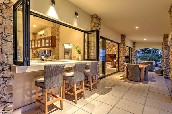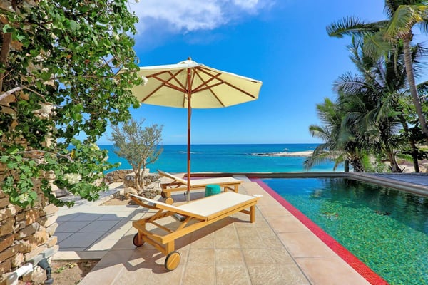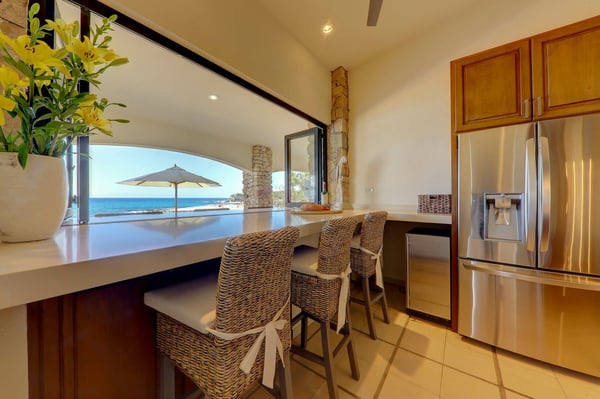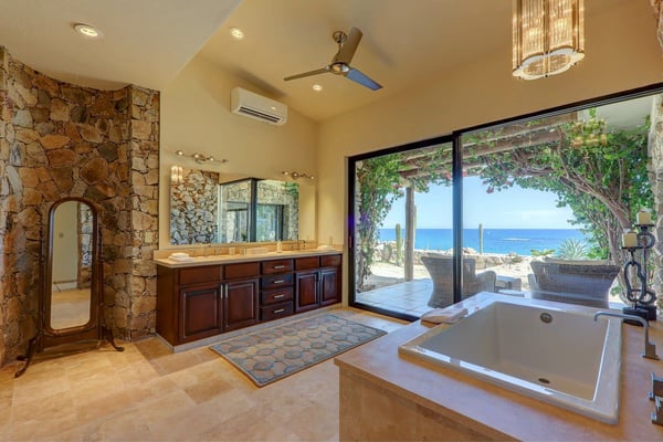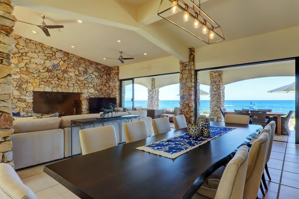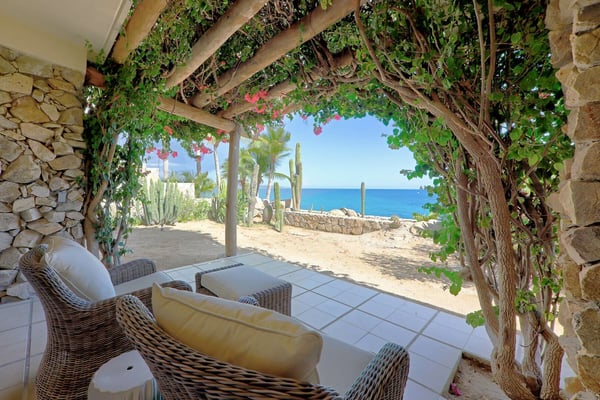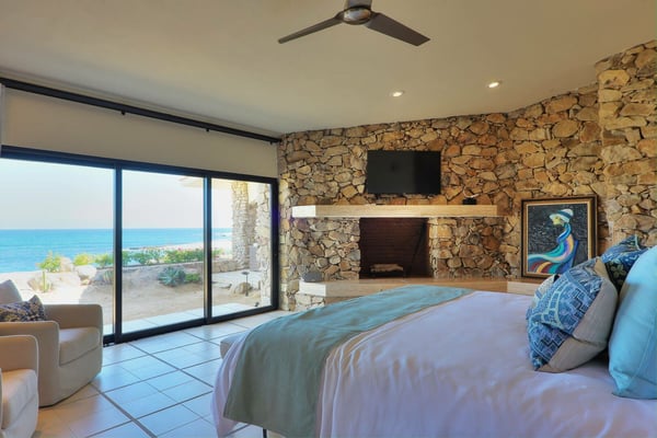 Located beachfront in the serene community of Palmilla Norte, Villa Manana is the perfect Mexican getaway for you and your friends and family. Enjoy stepping out onto the sand from the expansive terrace where azure waves of the Sea of Cortez meet the golden sands of the Baja coast. This luxury villa is bound to surpass all your expectations with its lavish design and modern amenities. Throughout Villa Manana you will find unique walls and accents of rock, including each of the five spacious bedrooms. As well as plush pillows and opulent linens, for your added comfort there is a flatscreen TV in every bedroom. Boasting spectacular views of the Pacific from every room, you're sure to have a once-in-a-lifetime stay at this lavish property. With enough space to accommodate up to twelve people, there is no need to leave anyone off your guest list when you stay at Villa Manana. For the inner chef in your party, there is a gourmet kitchen with professional stainless steel appliances, where everything needed to create a 5-star meal is available to you. Take in the stunning views from the kitchen bar that faces out towards the deep blue of the Sea of Cortez. Adjacent to the kitchen is the open-concept living and dining area. With wide and tall sliding glass doors opening to the terrace, this one-of-a-kind space is perfect for you to entertain and gather together with friends and family. A large flatscreen TV and plush cushions and chairs are guaranteed to provide you with the utmost comfort. Soak up the rays of the warm Baja sun from one of the several lounge chairs dotted all over the terrace. Dine outdoors at the spectacular outdoor dining table for a unique experience where you'll savor delectable meals while gazing out to the shoreline and the ocean beyond. Never lose sight of the panoramic views at Villa Manana, even as you take a dip in the private pool or hot tub. Enjoy everything Cabo has to offer when you stay at Villa Manana.