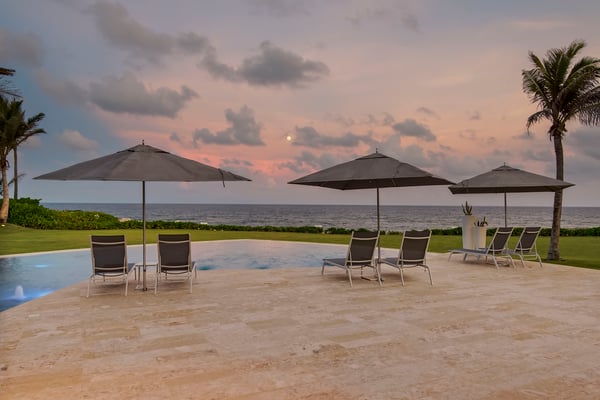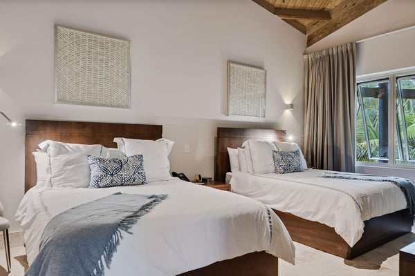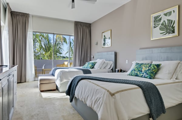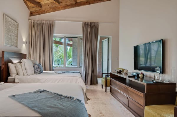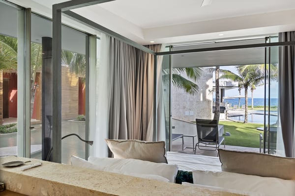 Guests staying within Puntacana Resort & Club will have access to all resort amenities and facilities. Resort amenities and facilities include two golf courses ($), two beach clubs ($), Six Senses Spa ($), restaurants ($), bars ($), and tennis centre ($). The glimmering Caribbean Sea is undoubtedly the ideal background of any Punta Cana getaway, and atCorales 123 | Villa de Agua, the turquoise water is the focal point of the home's unique design. Whether sharing a meal with the group or reclining in solitude at the pool, the villa was constructed to give you exposure to the serene sounds and sights of the sea. Corales 123 | Villa de Agua features plenty of space for a large group of friends or family, and every well-appointed bedroom includes premium bedding, air conditioning, a safe, a TV and sound system, and ample closet space. The bedrooms consist of a master bedroom with a king bed, a second-floor bedroom with two queen beds, three additional bedrooms with king beds, and an apartment-style unit with two queen beds. Each bedroom has an en suite bathroom with everything you need to pamper yourself. We provide sumptuous towels and toiletries, and every bathroom features modern fixtures and sleek wooden cabinetry. Should you need to do laundry, the villa includes two washer-dryers, and our concierge team can assist with dry cleaning services. But Corales 123 | Villa de Agua isn't just a place to sleep; it's a place to relax, to enjoy the gorgeous Punta Cana weather, and to savor time with loved ones. The villa's common areas are designed to be conducive to socializing and entertaining, and every room features Caribbean-inspired artwork and airy, high ceilings. With a spectacular view of the ocean, the main living room is one of the highlights of the villa. This space features floor-to-ceiling windows and funky light fixtures, making it a place you'll never forget. The doors open up to an outdoor gathering space and the private pool, so the socializing can effortlessly continue inside or outside. And, of course, everybody will work up an appetite at the beach or on the golf course, and Corales 123 | Villa de Agua features a one-of-a-kind, ocean-inspired kitchen. Whether you prefer to cook a meal for yourself or allow our chef service to serve you, the kitchen is as beautiful to look at as it is to use. The kitchen is fully equipped with dishes, glassware, cookware, utensils, and a reverse-osmosis water purification system. Watch as the sunlight streams in the large windows and highlights the unique blue cabinetry and stainless steel appliances. When mealtime rolls around, the indoor dining room can comfortably accommodate twelve, and another four can sit at the outdoor table directly outside the doors. This outdoor space works well as a kids table. And for more casual meals, we find that guests enjoy having lunch by the pool or a quick bite at the breakfast bar in the kitchen. The private pool is another highlight, and just as fabulous as the pool itself is the pool deck, where guests can recline on the lounge chairs under umbrellas. Adjacent to the pool is a barbecue area and outdoor kitchen, which are always popular with families. Throughout Villa de Agua, you’ll find fast WiFi (80 Mbps), Sonos sound systems, and climate control. You’ll rest peacefully knowing the gated property has a modern security system and safety essentials. The home's contemporary design and watery inspiration can be noticed everywhere, from artfully placed mirrors to reservoir pools. It is an exceptional property, an architectural marvel, and a place where memories for a lifetime will are made.