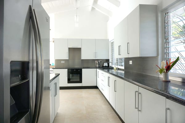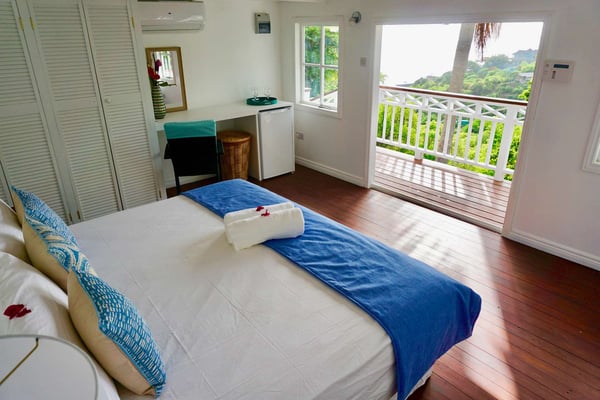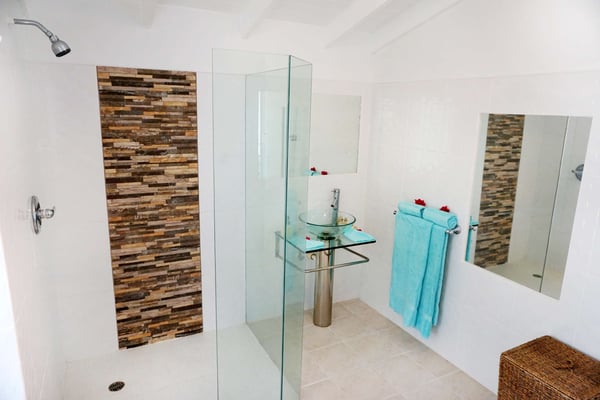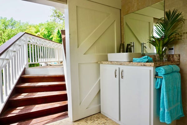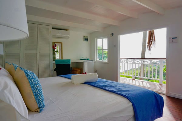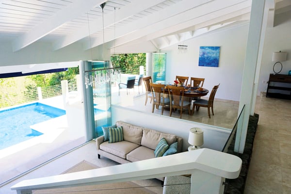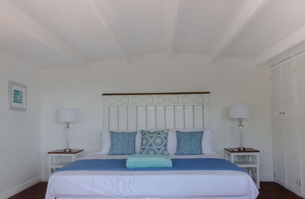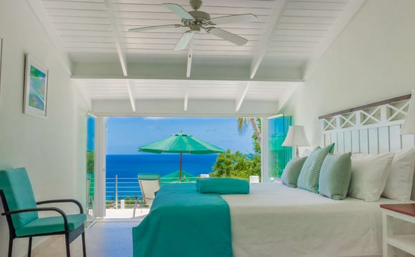 La Mer's unassuming exterior only enhances the delight of the bright airy home that opens to a spacious pool deck with excellent views. This villa property consists of the main building with two air-conditioned en suite bedrooms, a modern and fully equipped galley kitchen and a split-level living and dining area. The bedrooms and living space open by way of glass folding doors onto the main pool deck, bringing in sea views and breezes. The villa is a Caribbean contemporary design, with minimalist lines and bursts of tropical hues against a white canvas. La Mer invites quiet contemplation on its large deck, with loungers for sun-worshipping or stargazing, and both indoor and outdoor seating for dining. A special feature of the property is the stand-alone master suite, Coconut Cottage, set apart from the main house by a few feet and featuring a king-size bed, en suite bath and equally wonderful sea views, with a bit more privacy.