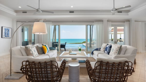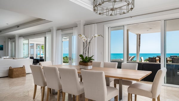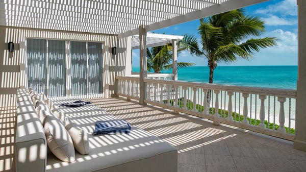Nearby construction may result in noise disturbances. For further details on how this might affect your stay, please reach out to a Rental Escapes villa specialist. Located in Long Bay on the southeast coast of Providenciales, this extra special villa boasts panoramic views, soft sands and striking sunsets on the doorstep. Outdoor entertaining is a must, with spaces for dining and socializing designed to maximize the ocean vistas. A separate guest house with an outdoor deck and palm-fringed pool also offers extra flexibility and privacy for groups and families. Alongside all the usual 5-star features and facilities for entertainment, respite and relaxation, sports lovers also benefit from the use of onsite tennis and basketball courts. Privacy and exceptional comfort come as standard, with Haven House’s classically styled interiors the ideal retreat after a day in the sun.