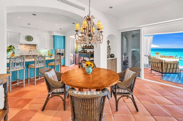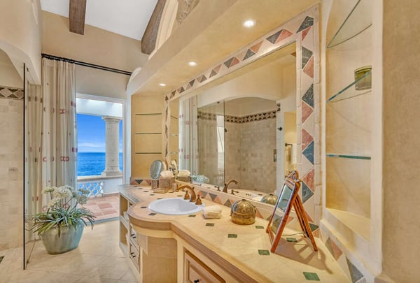Villa Nácar, a luxurious retreat in Cabo, San Lucas, promises an unparalleled holiday experience. This 7,200-square-foot mansion on the Sea of Cortez shores seamlessly blends indoor and outdoor living, boasting five individually decorated suites that accommodate ten guests comfortably. Every space, featuring soothing aquamarine décor, offers mesmerizing sea views and private terraces. The villa extends its charm with an outdoor living area, an infinity pool, plenty of lounging spaces, and a beachside fire pit, perfect for unwinding after a sun-kissed day. At Villa Nácar, your vacation is meticulously catered for by a dedicated butler and chef, leaving you to relish the breathtaking views, personalized meals, and various activities.