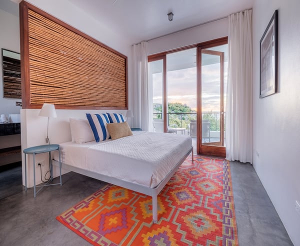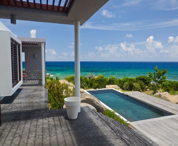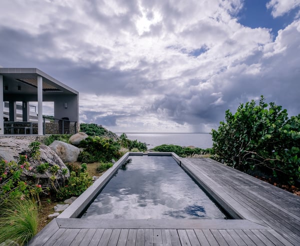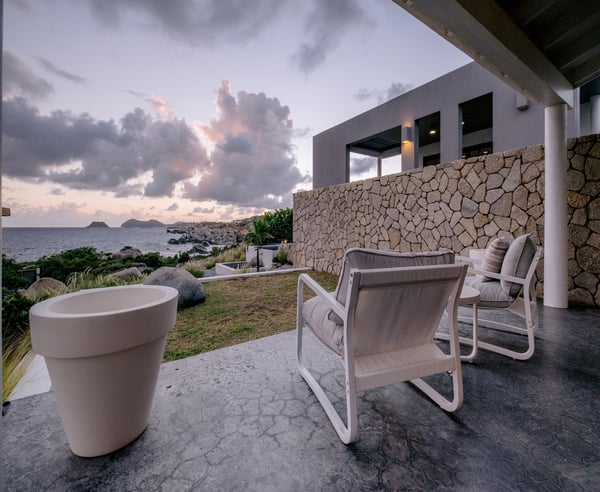 Perched on the pristine beach at Crook’s Bay, Bayhouse offers breathtaking 180-degree views of the Caribbean Sea and nearby islands. With its sleek, modern design and exceptional location, this villa is perfectly suited for discerning travelers seeking the ultimate island escape. Bayhouse blends timeless architectural elements with contemporary elegance, creating an inviting retreat for couples, families, or groups of friends. Thoughtfully designed, the villa’s layout ensures both privacy and communal enjoyment, making it an ideal choice for any occasion. Bayhouse boasts three air-conditioned bedrooms, 3.5 bathrooms, and a variety of indoor and outdoor living spaces. The villa is divided into two connected pavilions: one housing the bedrooms and the other the communal areas. These pavilions are joined by a covered outdoor dining terrace, providing a seamless flow between relaxation and socializing. Below the terrace, you’ll find an inviting swimming pool, expansive pool deck, reflecting pool, outdoor shower, and lush gardens that provide a serene backdrop for your stay. Bayhouse’s open design and elegant outdoor spaces create a harmonious connection to the natural beauty of Virgin Gorda. Bamboo wood gate leads down to Crooks Bay Beach, perfect for beachcombing and a nice sandy area to relax by the ocean.