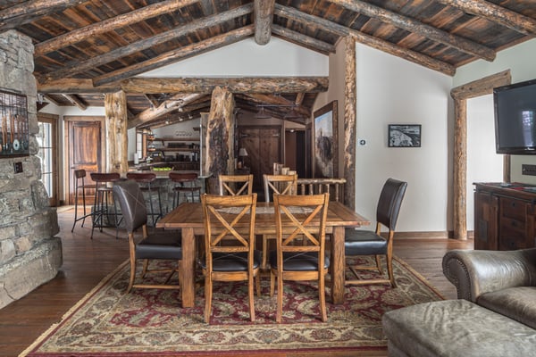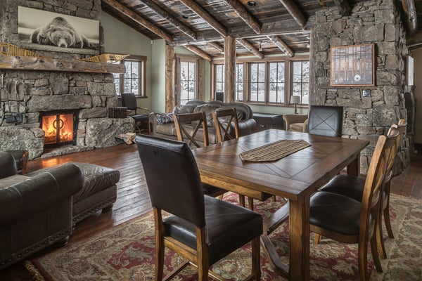 Ski Butlers offers you the best rental experience in the industry. No more lines. Ski Butlers is a full-service ski and snowboard company that delivers the equipment to you. Contact a villa specialist for more information. Sleeping 11 guests in Big Sky, Hobbit House is a peaceful 5-bedroom, 4.5-bathroom retreat, combining the serenity of a private home with the convenience of nearby amenities, like Big Sky Golf Course. Located on the 16th hole, a short walk from Town Center and the free ski shuttle, guests will love the feeling of a private escape with easy access to restaurants, shops, and other entertainment. Perfect for the whole family, easily drive to the base of Big Sky Resort, hiking trails, fly-fishing streams, and parks in less than 15 minutes! Converted from an old ranch house into a luxurious 2-story lodge with rustic flair, it showcases an exquisite blend of local natural timbers and majestic stone fireplaces that radiate warmth and elegance. Within this space lies the great room, where massive picture windows display expansive mountain vistas and lush grounds adorned with evergreen trees. In the living area, 2 comfortable leather armchairs and a full-length sofa situated around the prominent stacked-stone fireplace and TV form a welcoming haven. Tucked away in its own nook, a gas fireplace and a 2-person game table await. Continuing into the gourmet alpine kitchen, boasting high-end appliances, stone countertops, and wood accents, it inspires a home-cooked meal. Guests can easily dine together between the 6-seat dining table and the 5-stool breakfast bar. Down the sunlit hallway lies the spacious primary bedroom with a king bed, a gas fireplace, heated floors, and a large clawfoot tub in the private bathroom—all complemented by breathtaking views from the private outdoor area. Additionally, 2 guest bedrooms, each furnished with a queen bed and private bathroom, stand alongside the kid-friendly bunk room with a twin-over-full bed. After dinner, head downstairs to the game room for a friendly game of billiards or foosball and enjoy a movie on the home theatre system. This floor offers a guest bedroom with a queen bed. A washer and dryer are available for added convenience. Hobbit House provides sweeping views complemented by the tranquil atmosphere of the golf course. Walk to local cafes, restaurants, galleries, and shops, or take advantage of the private 2-car garage to explore the surrounding area, including Yellowstone National Park (roughly 1 hour). Book this year-round home today! *Please be advised that this home does not have air conditioning.
