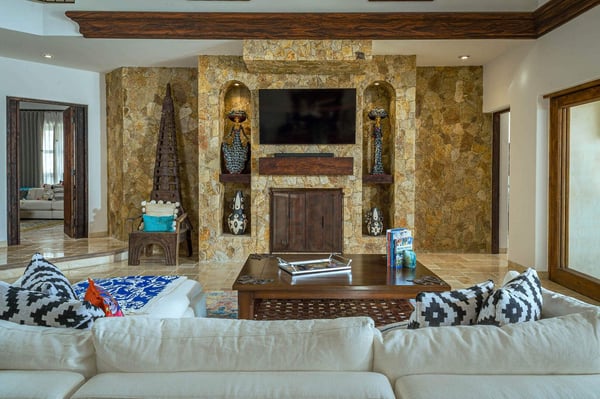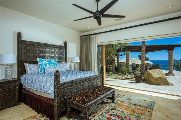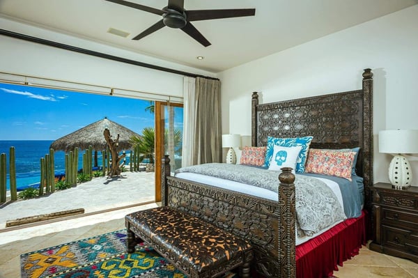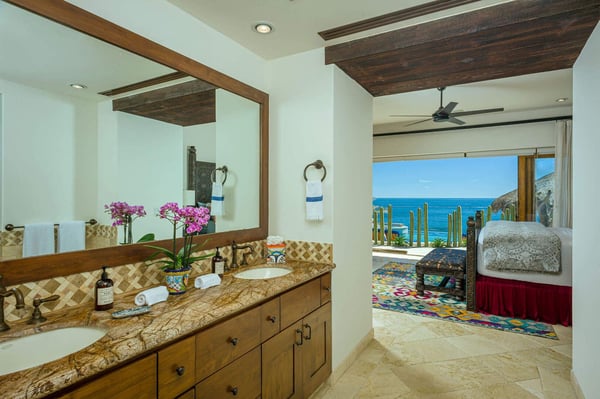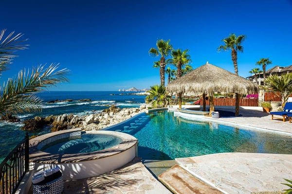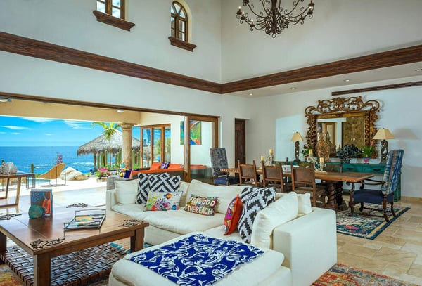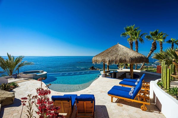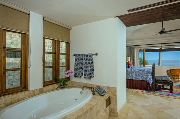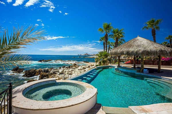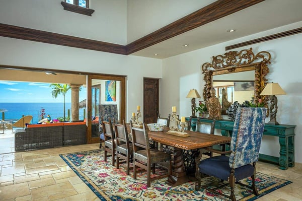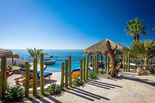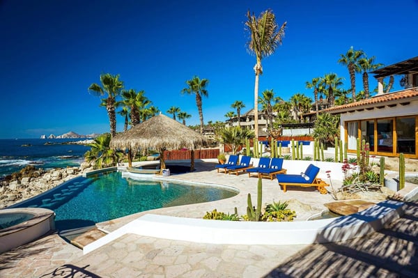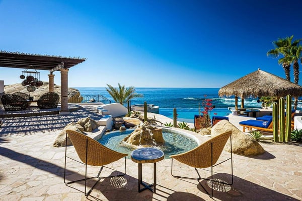 Punta Ballena Beach Club offers breathtaking views of the Offering breathtaking views of the Sea of Cortez and surrounding coastline. Guests will have access to the resort fitness centre, swimming pool and restaurants. Oceanfront luxury soars to new heights with this richly adorned, Hacienda-style home. Located directly next to the Esperanza Beach Club in ultra-exclusive Punta Ballena. The newly remodeled Casa Carreta reimagines luxury, with extreme attention to detail, from its elaborate outdoor space to its intricately selected furnishings. It also boasts awe-inspiring whale watching opportunities and direct views of Land's End and its infamous arch. Truly make a grand entrance from the villa's spectacular staircase, as it opens to a two-story vaulted great room, a fully equipped chef's kitchen, large laundry room and bar. This well-equipped villa also includes a media room with a large sectional. While there are six bedrooms to choose from, four are luxurious master suites with huge walk-in closets, private terraces and spectacular ocean views. The home also includes the bonus of a guest casita with its own kitchenette and bath. The high-end appeal of the home extends to its outdoor space, with multiple outdoor seating areas designed to take in the picturesque surroundings from every angle. Cool off in the infinity-edge swimming pool with a swim-up bar, relax in the hot tub, or take a break under the shade of the palapa. Curl up by the fire pit as the sun goes down for the evening or listen to the waves crash into the rocky shore from the second-floor terrace. While a staircase leads to the beach below, guests of Casa Carreta are also treated to an extremely private stretch of sand. Along with the home's plentiful indoor and outdoor amenities, the gracious property sits right next door to the Punta Ballena Beach Club, with access to a spa, onsite dining and a fitness center. Other options include tennis and the club's grand swimming pool overlooking ocean views. In addition to the Beach Club Bar and Grill, guests might also enjoy dining at Cocina del Mar at the renowned Esperanza Resort & Spa or the ultra-chic Toro Latin Bar and Grill near the entrance to the resort.