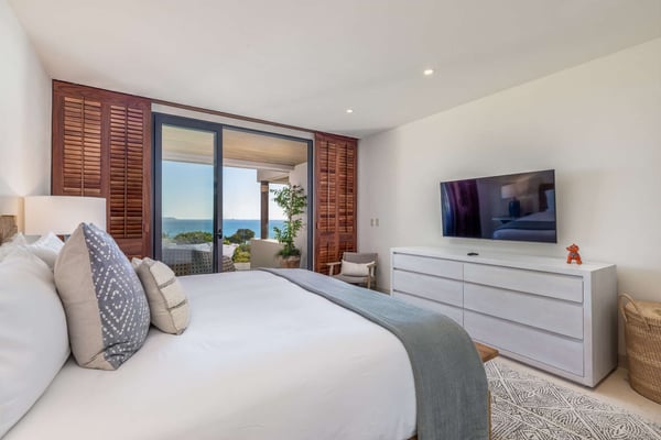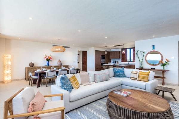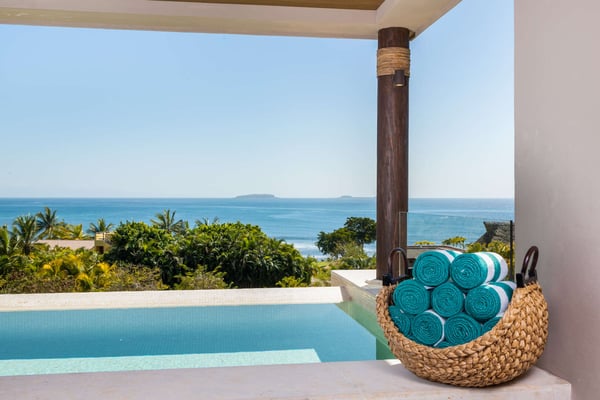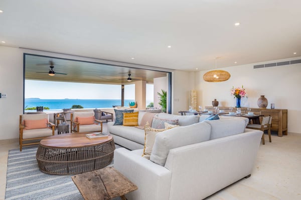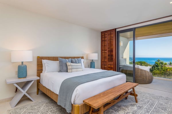 Construction is taking place nearby and may create some noise issues. Contact a Rental Escapes villa specialist for more information about how this may impact your stay. The Premier Golf Membership grants access to Pacifico Golf Course ($), Bahia Golf Course ($), the Tennis Centre ($), the Fitness Center ($), El Surf Club based on min. consumption fee ($), St.Regis Beach Club based on availability and min. consumption fee ($), Pacifico Beach Club, Sufí Ocean Club and Kupuri Beach Club. Contact one of our Villa Specialists for more information. Embark on an unforgettable journey of indulgence and relaxation at Condo Cualli, where luxury meets serenity, and every moment is an escape into paradise. Condo Cualli, which means “bliss” in Nahuatl, is your private sanctuary nestled in an enviable location within the prestigious Tau Residences, situated inside the secure gates of Punta Mita. Discover a sustainable oasis where elegant, relaxed decor meets unrivaled vistas, offering a haven for those seeking a respite from the ordinary. Embrace the essence of Punta Mita as you bask in the warmth of the Mexican sunsets and immerse yourself in the timeless beauty of Condo Cualli. Perched majestically on the second floor, Condo Cualli, presents awe-inspiring unique ocean, mountain, and golf course views. The expansive panorama stretches 270 degrees and includes a direct view of surfers on the renowned La Bahia break. Gaze out towards Las Marietas Islands, admire whales in season and spot golfers on the 18th tee and fairway of the signature Jack Nicklaus Bahia Course, all from the comfort of your private terrace. Indulge in the ultimate relaxation as you immerse yourself in the serenity of your own heated pool, perfectly complemented by the stunning outdoor living space. Adorned with elegant furnishings, professionally curated to evoke a sense of refined relaxation, Condo Cualli invites you to unwind and rejuvenate amidst the picturesque surroundings. Step inside to discover a spacious, light-filled living area adorned with high-end furnishings and enhanced with locally sourced artwork, celebrating the vibrant essence of Mexico. The fully equipped kitchen, boasting Sub Zero and Wolf appliances, beckons culinary explorations, while the breakfast bar offers a casual dining experience accentuated with sweeping vistas. Each of the three meticulously appointed bedrooms offers unobstructed ocean views and ensuite bathrooms adorned with luxury fixtures, ensuring a serene retreat for you and your guests. With a capacity to comfortably accommodate up to 8 adults or 4 adults and 6 children, Condo Cualli promises cherished memories and an unforgettable experience for discerning families and groups alike.