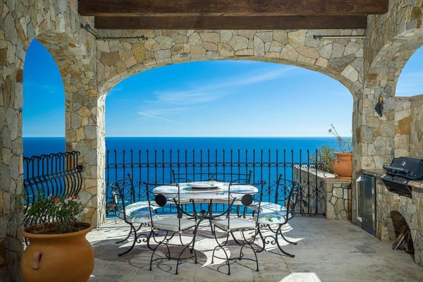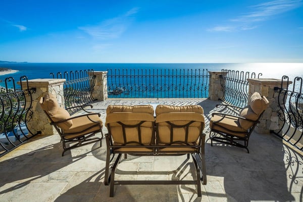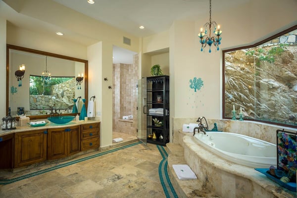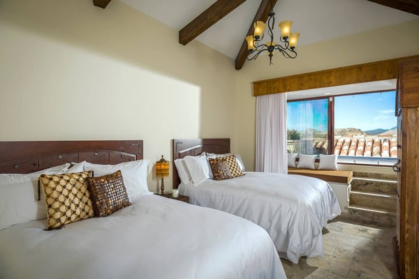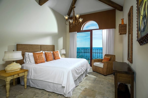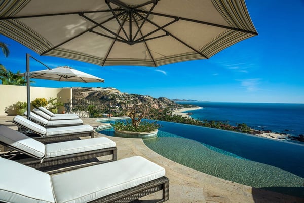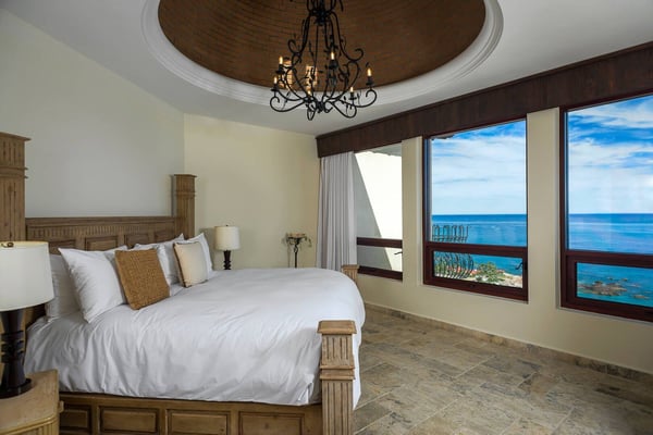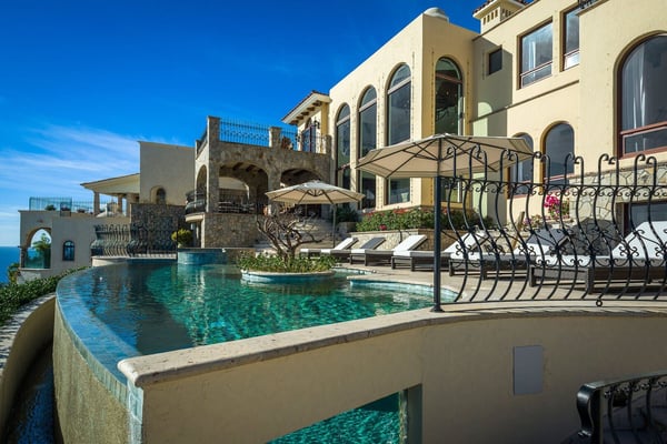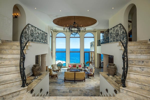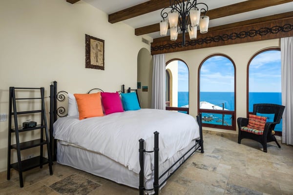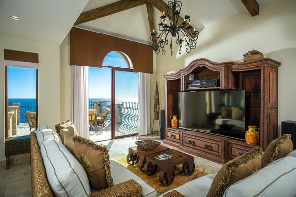 Impressive Mexican-style property located at the highest point of a hill of striking red earth overlooking the white sands of Playa de Palmilla. Situated on the exclusive gated community of Rancho Cerro Colorado; Casa Rio de Luna offers Endless views of the Sea of Cortez and the extraordinary lights of the community that takes your breath away from this house with double-height ceilings. Casa Rio de Luna is bathed by the sun and has a large infinity pool that is co-founded with views of the ocean. Exquisite works of stone and art surround the walls of this house. wine room, TV room, BBQ area and fireplace are some of the amenities of Casa Rio de Luna that get its name from the river that is reflected in the sea at night with the help of the light of the moon and that conveys a feeling of absolute calm and serenity. Casa Rio de Luna with six rooms can accommodate up to sixteen persons this villa is the perfect place for family reunions and corporate retreats, each bedroom includes an en-suite bathroom, king or queen size bed, air conditioning, iPod dock, with most bedrooms providing impressive ocean views and comfortable beds. The villa offers breathtaking ocean views to the sea the Cortez from pool deck and terrace makes the perfect spot for cocktails and weddings. As part of the benefits of this villa is the access to Punta Bella beach where our team can help with a beach set up (sun shades and chairs) and you can access it with a four-seated club car that the house provides.