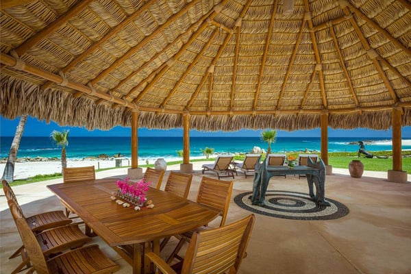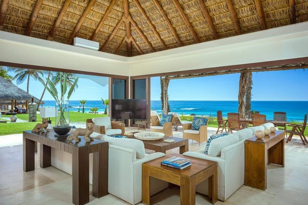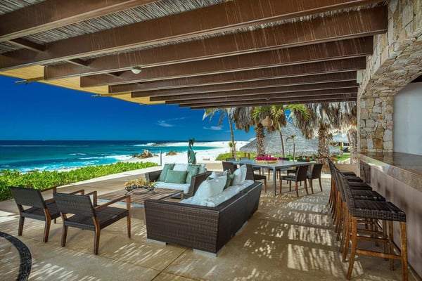 Awaken your senses to the uninterrupted beauty of Los Cabos and the Tourist Corridor from this stunningly unique vacation villa. The celebrated Villa La Concha is a six-bedroom, six-bath masterpiece with two generous master suites, and direct ocean views from many of the property's meticulously designed rooms and suites. With space to easily accommodate and entertain up to twelve guests, this extremely private, multi-building property sits right on the edge of the white sand and turquoise blue waters of the Sea of Cortez. Bask in the stunning surroundings, as the property offers multiple opportunities for soaking in the natural appeal and oceanfront scenery from nearly every angle. Watch as the sun comes up for the day from one of the beachfront lounge chairs, or simply relax under the partial shade of towering palm trees overlooking the refreshing, infinity-edge swimming pool and spa. Slip into the Jacuzzi tub for a nightcap as the sun sets at end of another magical day in paradise or dine overlooking the waterfront from one of the covered dining areas, as even the inside of the villa opens up seamlessly to abundant outdoor living and entertaining space. As the ultimate Los Cabos getaway, Villa La Concha is a true oceanfront luxury destination. Just steps from the water and the beach, the property sits right next door to dining options and other amenities at the stunning Hilton Los Cabos Beach & Golf Resort and the Cabo Real Golf Club. Spend your time relaxing on the sand, in the water, deep-sea fishing or enjoying the many other delights of this upscale region. For added safety and convenience, the property also comes with the benefit of daily housekeeping as well being located in a gated, secure area.