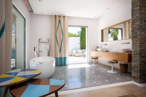 Located amongst the rolling hillside, wineries, and lavender fields of the French Riviera, Villa Grande is a secluded and spacious property, just far enough from the bustling city of Saint Tropez to visit within a short drive, yet enjoy the utmost privacy of the countryside. With luxurious accommodations for sixteen and plenty of indoor/outdoor hosting space, this recently restored and redesigned villa filled with modern art is the perfect setting for a special event, destination wedding, or family reunion. Villa Grande's breathtaking estate is ideal for large groups thanks to its numerous lounge areas, swimming pool, and private gardens. There's always somewhere to find a space to break away for more intimate moments, as well as full group gatherings.