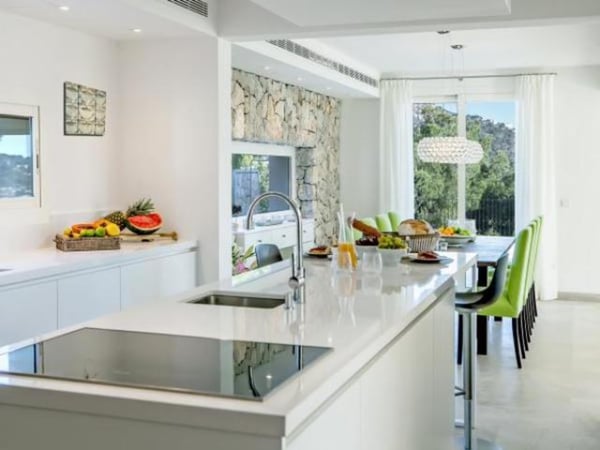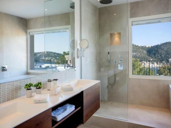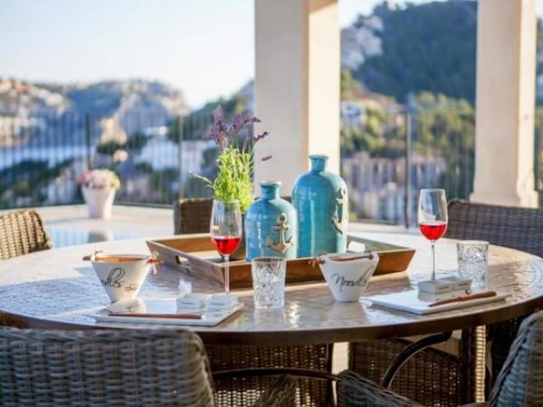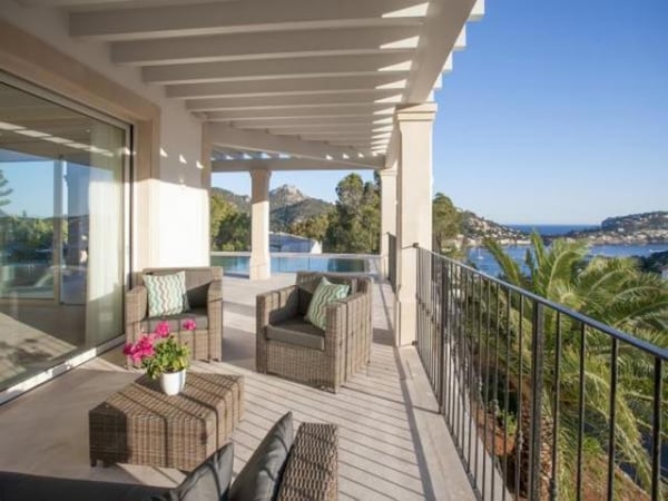 The property is composed of a main villa with four bedrooms and a guest house provides the fifth bedroom. The harbor and Puerto Andratx are within walking distance – there are also sea views from the property towards the harbour. The living areas are spacious, in neutral tones with splashes of colour, with careful attention to detail throughout. All modern conveniences are present; air conditioning, Sonos music system (with indoor and outdoor speakers), satellite TV, and internet access. There is a six-person jacuzzi with sea view on the first floor balcony, whilst in the grounds there is a 10m x 5m swimming pool (heatable on request), several terraces and dining areas and a mature garden with lawned space. Look forward to long summer days with the barbecue in action whilst the children enjoy the pool, before relaxing with your favourite cocktail with the sunset for company.