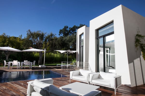 With modern lines and minimalistic style, light and airy, this is a villa for those that like to relax in privileged surrounds. The living and kitchen areas enjoy minimalistic style and modern lines, whilst there are six well presented en-suite bedrooms. Despite its modern take, the villa is also wholly practical with a well equipped kitchen and living area including a kitchen top that turns into a breakfast bar. The outdoor area includes a pool, jacuzzi and lounging barbecue area. The beach is walking distance, tennis and golf nearby. Swimming pool approx 10m x 5m, jacuzzi, barbecue, alfresco dining areas, automatic entrance gateand security, parking for 3 cars.
