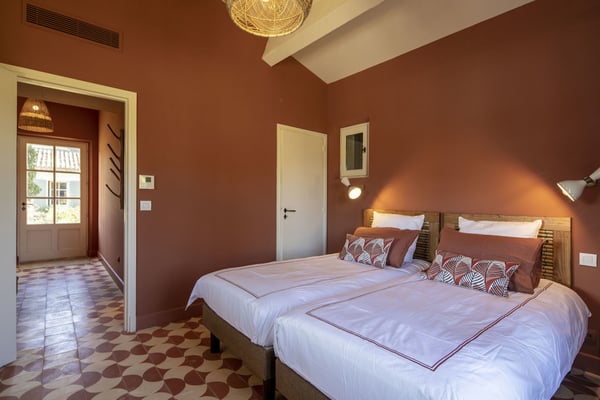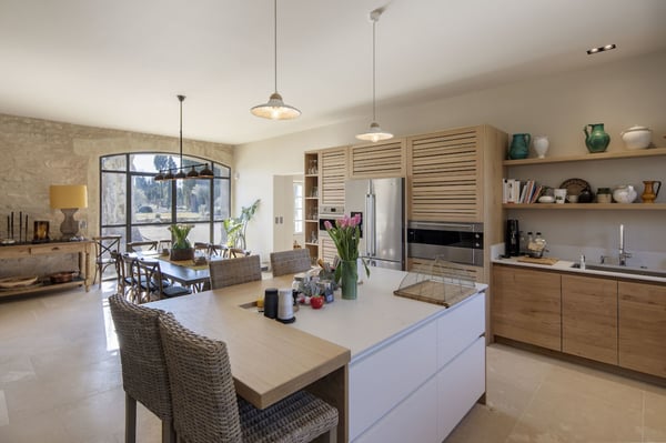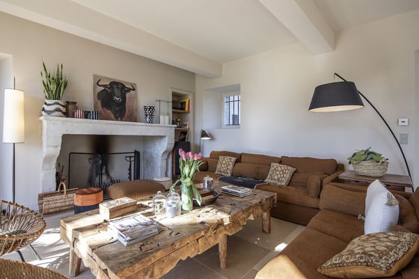 This magnificent 19th-century Mas is located just two kilometers from the village center of Saint Rémy de Provence and sleeps up to fourteen people with seven spacious air-conditioned bedrooms. Keeping the Provençal charm, the farmhouse is dressed with noble materials of the region and dressed with signed furniture. The view of the park is superb, two magnificent plane trees in the foreground, a scented lavender field in the middle of which flows a small stream and in the background, a field of olive trees. A nice patio at the back of the house will allow you to enjoy the freshness of the morning. The Mas consists of a spacious living room with a fireplace, under-floor cooling system, television, an office desk and comfortable sofas with large windows opening to the garden with its two magnificent plane trees. A spacious fully equipped modern kitchen with American style fridge/freezer and wine cooler plus a dining area that extends into the living room. The bedrooms, one on the ground floor has their own terrace, office and bathroom. On the first floor, there is a family bedroom area with two bedrooms which share a large bathroom. Three other rooms, all of different decoration each have an en-suite bathroom and offer a nice view of the Alpilles hills. There is a small independent apartment with a spacious bedroom and a bathroom in the pool annex. There is a large heated and secure swimming pool with a pool-house area plus a summer kitchen, inviting you to swim and relax under the Provencal sun with dramatic views of the Alpilles region. There are bicycles and table tennis available for guests to use. St Remy-de-Provence is just over two kilometers. A charming classical little town, capital of the Alpilles with all the amenities, boulangeries, little boutiques, quaint pavement cafes and excellent restaurants, it has winding cobbled lanes where you will discover small squares, historic buildings, churches and museums and on Wednesday the colourful weekly market will offer the opportunity to discover local products and handicrafts which is a must to see. The landscape in this region is particularly picturesque, encompassing rolling hills dotted with quaint hilltop villages and countless hiking trails, extensive sunflower fields and olive groves. This region is steep with history with plenty of sites to visit such as Les Baux de Provence which is considered one of the most beautiful villages in France, Avignon, Arles, Nîmes and Uzès and other towns one can easily visit in a day. At only 45 minutes drive to the east is the Luberon region and further south, Camargues unique wetland populated by pink flamingos and wild horses.