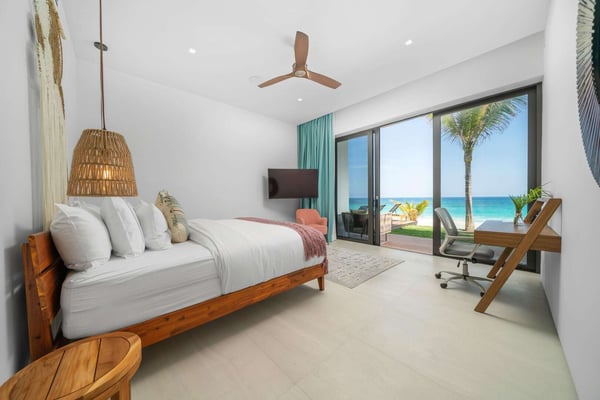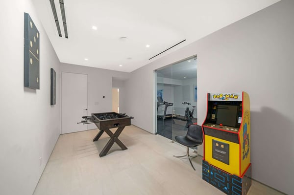 Recognized as one of the finest Harbour Island rentals, it combines space, style, and a welcoming atmosphere for an unforgettable stay. The property boasts nine luxurious suites, each with ensuite bathrooms, ensuring ample space for up to 18 guests. Additionally, the oceanfront location offers breathtaking views and direct access to the island’s famous pink sand beaches, enhancing the overall experience. For those seeking the ultimate luxury, Bahamas vacation houses like this one provide an unparalleled blend of privacy, comfort, and sophistication. This 12,000sf Harbour Island rental is equipped with the latest technologies and all the bells and whistles you could ask for. This stunning architectural masterpiece is perched atop the dunes of Harbour Island, offering breathtaking views of the pristine ocean. Harbour Island rentals are among the most renowned in the Bahamas, and they proudly feature La Palmeraie Modern House, one of their premier properties. With sleek, modern architecture and contemporary minimalist décor, this residence radiates luxury and sophistication. The breathtaking property features nine suites across three levels, offering ample space for an unforgettable, upscale retreat. Located on the ground floor is the fitness room, a sauna, steam room and shower with bathroom. There is a small game room with a foosball table, Pac-Man arcade game, dart board and board games. At the south end of the home is a door that leads to a large apartment with a full kitchen, dining area, a living room and suites 8 and 9. The two apartment suites have queen-size beds and share a full-size bathroom with a shower. The expansive first floor of this Harbour Island rentals includes a large open living room, gourmet kitchen, and 4 suites. Glass sliding doors open up to the beachfront deck and infinity-edge pool. Two of the suites are located at the front of the house, while the other two face the beach, with sliding glass doors that provide direct access to the pool deck. La Palmeraie Modern House was thoughtfully designed as a ‘Resort House,’ complete with a full range of amenities. Our Harbour Island rentals offers an unparalleled level of luxury, surpassing the amenities of any other rental on the island—or anywhere in the Bahamas.