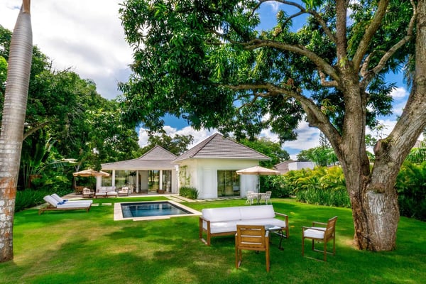 All guests must register with the Casa de Campo Concierge office, and for a small daily fee ($30 per adult per night & $15 per child per night), are granted access to resort areas and amenities. Casa de Campo Resort facilities and amenities include golf courses ($), the fitness centre ($), racquet center ($), restaurants ($) and bars ($). Contact Rental Escapes for more information about pricing. Casa del Lago is a stunning and newly built four-bedroom villa that combines elegance with serene views of The Links Golf Course and its picturesque lake. The villa is fully air-conditioned, ensuring comfort in the living and dining areas, bedrooms, and kitchen. A highlight of the property is the heated swimming pool, perfect for enjoying cooler evenings or relaxing after a day of activities. The outdoor terrace offers a charming space to unwind, take in the tranquil surroundings, and embrace the tropical ambiance. With its spacious backyard, modern amenities, and thoughtful design, Casa del Lago is an ideal retreat for relaxation, recreation, and creating unforgettable memories.