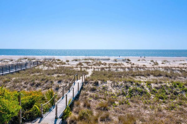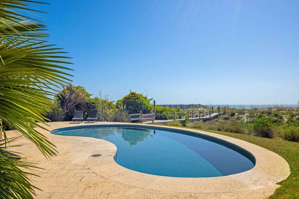 Hilton Head is a beautiful island and home to Palmetto Dunes; with its bike trails, championship golf courses, shopping, restaurants and sugar-white beaches, it is the perfect place to relax. This home is perfect for entertaining with eight bedrooms, eight and a half bathrooms, two large living areas and sitting areas with ocean views. A large pool, hot tub and outdoor seating can be found at the back of the property, along with private access to the beach. Nine steps lead you to the grand entrance of the home. Upon entering the home, immediately to the right is bedroom #1, which has a king bed, flat screen TV and a private bathroom with a shower. The second bedroom has ocean views with a king bed, flat screen TV, private bathroom with a shower. There is also a powder room in the hall between these two bedrooms. Directly in front of the entrance of the home is the living room has an ocean view, a sleeper sofa, a chair, a large flat-screen TV, a decorative-only fireplace, a bar area and a desk with an Apple computer. On the other side of the living room is bedroom three with a king bed and ocean views, flat screen TV, and access to the bathroom; this bathroom also has a washer and dryer. This bedroom also has a door that leads out to the deck/ pool area. Bedroom four has a king bed, a TV, and a private bath with a large shower. Then, to the left of the entrance, you will find seven stairs leading you to bedroom five. This room has two double beds, a flat-screen TV and a private bath with a shower. The second level of this home has spectacular views. The main living area is open plan, with a large living room leading to a balcony, perfect for alfresco dining and BBQs. The two dining rooms include a table that can seat up to ten guests and a smaller area with up to six guests. The spacious kitchen area has been recently renovated, the open-plan design makes it perfect for large family gatherings. On this level, you will find bedroom six with a king bed, flat screen TV, decorative fireplace, and a separate room with a reading chair and desk that overlooks the ocean and a private bathroom with a walk-in shower. Bedroom seven is located on this same side of the house, with a king bed, TV and large private bathroom. Also, on this second level you will find the second living room with ocean views, three sofas, flat screen TV, and a bar area with seating for four. Next is the lovely kitchen that overlooks the ocean and has a dining room table with seating for ten. The kitchen has a door that leads out to the upper-level patio. Off the kitchen, you will find another washer and dryer. 5 more steps up will take you to bedroom eight which has a king bed and a bunk bed with a trundle pull-out and a flat-screen TV. This bedroom has a walk-through closet and a full bath with a shower. Outdoors, you will find the private pool area complete with a spa, two sets of tables with seating for seven, lounge chairs and an outdoor shower. There is a spiral staircase that leads you to the second-floor balcony which can also be accessed through the inside of the home. On the second-floor balcony, there is a propane grill and a table for six. This spectacular home will not disappoint! Only two minutes away from Palmetto Dunes golf courses.