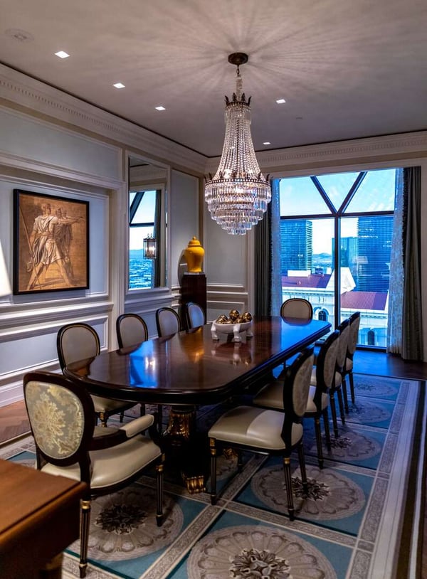 Thinking about catching a show or event on the Las Vegas strip? We've got you covered! Feel free to inquire with your Rental Escapes villa specialist about ticket options and prices. Formal, opulent and elegant, the Chateau Villa has a European Neoclassic style with a blend of warm woods with light painted finishes, light and bright shades of neutral and a celadon mint green.