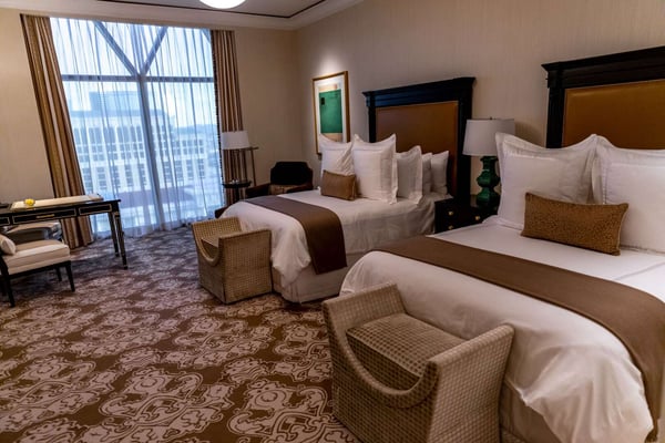 This is Vegas, upgraded. From rock star to high roller, business meeting to bachelorette party, family vacation to brocation - Caesars has the perfect suite for you. With luxury amenities, Las Vegas suites will elevate your Vegas vacation. Caesars Palace villas and penthouses are also worth checking out if you want to further enhance your Las Vegas experience. Dining Options at Caesars Palace • The heat is on with Gordon Ramsay's Hell's Kitchen restaurant. The restaurant is inspired by the hit TV show and features red and blue design elements as well as signature dishes and recipes featured on the show. Open daily from 11 AM to 11:30 PM. Business casual. • New York City landmark Old Homestead Steakhouse brings its East Coast flavor to Caesars Palace with its famous cuts of meat, seafood favorites and a burger that's out of this world. Open for dinner Sunday to Thursday from 5 PM to 10 PM and 4:30 to 10:30 PM on Friday and Saturday. Business casual dress. • Get your sushi on at the world's largest Nobu Restaurant at Caesars Palace. Feast on imported seafood and exotic delicacies from acclaimed chef Nobu Matsuhisa. Open daily for dinner from 5 PM to 10 PM. Business casual dress. • At Café Americano you can enjoy classic American dishes as well as Latin fare made with high-quality ingredients. Whether it be breakfast, lunch, dinner, or something from the late-night menu, you can savor food and drinks that are made fresh all the time. Open 24 hours. Casual dress. • Restaurant Guy Savoy has been called the best restaurant in Las Vegas, serving elegant French Cuisine in a fine dining environment. Designed to emulate the menu of his Paris restaurant, the Restaurant Guy Savoy Caesars Palace menu includes many classic Savoy dishes. Open for dinner Wednesday to Sunday from 5:30 PM to 9:30 PM. Formal dress. Nightlife at Caesars Palace Caesars Palace's casino brings you all of your favorite slots and table games in an elegant Roman setting. Take your chances on craps, roulette, blackjack, baccarat and more. Caesars Palace poker recently relocated to the heart of the gaming floor between The Colosseum and the Race & Sports Book. Step into the 4,500 square foot casino poker room and let the poker excitement spread. Get off the sidelines and into the game at the Caesars Race & Sportsbook. Catch all the action on a custom built, 143' HD LED screen coupled with state-of-the-art sound, you won't miss a minute of the game. The 'Home of Champions' buzzes with excitement as sports fans cheer on their favorites while watching action from coast to coast. Designed by the internationally renowned Rockwell Group, OMNIA Nightclub spans a total of 75,000 square feet. The multi-level venue encompasses a seductive ultra-lounge, a high-energy main room and mezzanine, as well as a breathtaking rooftop garden, showcasing panoramic views of the Las Vegas Strip. Must be 21 years of age. Open Tuesday, Thursday, Friday, Saturday and Sunday from 10:30 PM to 4 AM. Smart casual dress. Experiences at Caesars Palace The Forum Shops are a must-see, all-encompassing experience at Caesars Palace. Las Vegas' definitive luxury shopping destination, The Forum Shops include approximately 160 specialty stores and fine restaurants. Its lauded designer stores such as Louis Vuitton, Versace, Giorgio Armani, Valentino and Gucci represent some of the biggest names in fashion. Swim, sunbathe or rent a cabana in luxury at the Garden of the Gods Pool Oasis. Featuring seven different pool experiences, Garden of the Gods allows you to choose your own experience with exclusive pools, decadent cabanas and lavish sunbathing spots. Day bed and cabanas must be reserved in advance. Envelop yourself in the sprawling 50,000 square-foot grounds at Qua Baths & Spa that include a Laconium Room. With its retreat-like feel, unmatched amenities, and a more holistic approach to spa-ing. The experience at Qua is an all-encompassing ride to relaxation.