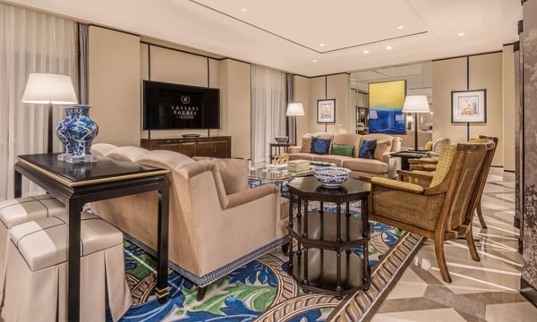 This is Vegas, upgraded. From rock star to high roller, business meeting to bachelorette party, family vacation to brocation - Caesars has the perfect suite for you. With luxury amenities, Las Vegas suites will elevate your Vegas vacation. Caesars Palace villas and penthouses are also worth checking out if you want to further enhance your Las Vegas experience. Dining Options at Caesars Palace • The heat is on with Gordon Ramsay's Hell's Kitchen restaurant. The restaurant is inspired by the hit TV show and features red and blue design elements as well as signature dishes and recipes featured on the show. Open daily from 11 AM to 11:30 PM. Business casual. • New York City landmark Old Homestead Steakhouse brings its East Coast flavor to Caesars Palace with its famous cuts of meat, seafood favorites and a burger that's out of this world. Open for dinner Sunday to Thursday from 5 PM to 10 PM and 4:30 to 10:30 PM on Friday and Saturday. Business casual dress. • Get your sushi on at the world's largest Nobu Restaurant at Caesars Palace. Feast on imported seafood and exotic delicacies from acclaimed chef Nobu Matsuhisa. Open daily for dinner from 5 PM to 10 PM. Business casual dress. • At Café Americano you can enjoy classic American dishes as well as Latin fare made with high-quality ingredients. Whether it be breakfast, lunch, dinner, or something from the late-night menu, you can savor food and drinks that are made fresh all the time. Open 24 hours. Casual dress. • Restaurant Guy Savoy has been called the best restaurant in Las Vegas, serving elegant French Cuisine in a fine dining environment. Designed to emulate the menu of his Paris restaurant, the Restaurant Guy Savoy Caesars Palace menu includes many classic Savoy dishes. Open for dinner Wednesday to Sunday from 5:30 PM to 9:30 PM. Formal dress. Nightlife at Caesars Palace Caesars Palace's casino brings you all of your favorite slots and table games in an elegant Roman setting. Take your chances on craps, roulette, blackjack, baccarat and more. Caesars Palace poker recently relocated to the heart of the gaming floor between The Colosseum and the Race & Sports Book. Step into the 4,500 square foot casino poker room and let the poker excitement spread. Get off the sidelines and into the game at the Caesars Race & Sportsbook. Catch all the action on a custom built, 143' HD LED screen coupled with state-of-the-art sound, you won't miss a minute of the game. The 'Home of Champions' buzzes with excitement as sports fans cheer on their favorites while watching action from coast to coast. Designed by the internationally renowned Rockwell Group, OMNIA Nightclub spans a total of 75,000 square feet. The multi-level venue encompasses a seductive ultra-lounge, a high-energy main room and mezzanine, as well as a breathtaking rooftop garden, showcasing panoramic views of the Las Vegas Strip. Must be 21 years of age. Open Tuesday, Thursday, Friday, Saturday and Sunday from 10:30 PM to 4 AM. Smart casual dress. Experiences at Caesars Palace The Forum Shops are a must-see, all-encompassing experience at Caesars Palace. Las Vegas' definitive luxury shopping destination, The Forum Shops include approximately 160 specialty stores and fine restaurants. Its lauded designer stores such as Louis Vuitton, Versace, Giorgio Armani, Valentino and Gucci represent some of the biggest names in fashion. Swim, sunbathe or rent a cabana in luxury at the Garden of the Gods Pool Oasis. Featuring seven different pool experiences, Garden of the Gods allows you to choose your own experience with exclusive pools, decadent cabanas and lavish sunbathing spots. Day bed and cabanas must be reserved in advance. Envelop yourself in the sprawling 50,000 square-foot grounds at Qua Baths & Spa that include a Laconium Room. With its retreat-like feel, unmatched amenities, and a more holistic approach to spa-ing. The experience at Qua is an all-encompassing ride to relaxation.