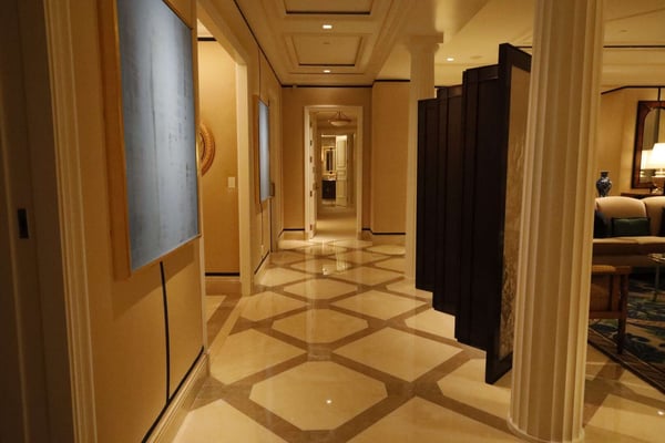 Thinking about catching a show or event on the Las Vegas strip? We've got you covered! Feel free to inquire with your Rental Escapes villa specialist about ticket options and prices. The two bedroom, 3,000 square-foot Manor Villa radiates the kind of elegance that the queen herself would approve of. The English-style villa is perfect for dinner gatherings or cocktail parties. There's a spacious living room decorated in blue and green accents and an eight seat dining table features a beautiful crystal chandelier overhead. Guests will also appreciate the spectacular view of the Las Vegas valley.