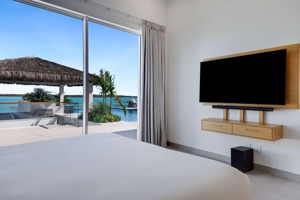 A standalone villa tucked directly onto the breathtaking Chalk Sound National Park, Ocean Breeze Villa is more than a modern, ultra-luxury retreat – it’s a celebration of connection, tranquillity, and effortless elegance. This five-bedroom waterfront estate sleeps 12 guests comfortably and feels at once expansive and intimate, designed for families and friends to come together in a setting as serene as it is spectacular. Every detail, from the white oak millwork and floor-to-ceiling windows to the curated artwork and indoor greenery, has been thoughtfully chosen to harmonize with the villa’s breathtaking surroundings and invite the turquoise blues of the Sound into nearly every room. Personalized service – including a dedicated butler and optional private chef – ensures your days unfold with ease and intention. Whether you’re gathering for a milestone celebration, indulging in sunset cocktails by the fire pit, or simply savouring the stillness of fresh-brewed coffee on a slow morning, this villa sets the stage for experiences that linger long after you leave.