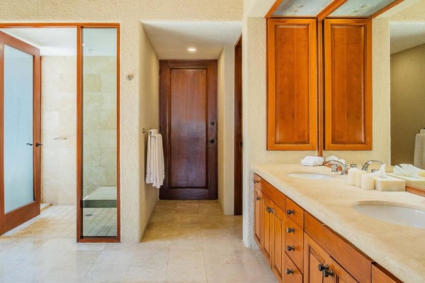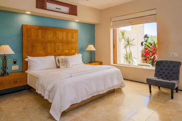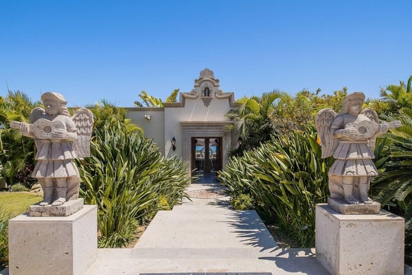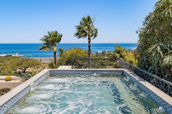 Construction is taking place nearby and may create some noise issues. Contact a Rental Escapes villa specialist for more information about how this may impact your stay. The spacious elegant Casa Brooks is located inside Cabo Del Sol. One of the most exclusive golf and resort communities in Los Cabos and is only ten minutes away from downtown San Lucas. This location allows you to be close to the activity, but far enough away that you can enjoy a tranquil setting to relax with your family and friends. This stunning luxury villa boasts an astounding ten bedrooms and nine and a half bathrooms while allowing twenty-two guests, making it a perfect place for a large gathering with family, friends and corporate events. This two-story, hacienda-style, luxury villa is both spacious and inclusive, from the moment you step into the house, you feel like royalty. As you walk through the immense double-door entryway, you are greeted by an exquisite courtyard with a central fountain surrounded by meticulous brickwork and old-world details. As you make your way to the living room, you will be welcomed by sweeping ocean views. Along with the villa's ten bedrooms, there is a separate, full apartment that has its own entrance and kitchen. The formal dining room, main kitchen, and outdoor barbecue area flow together, making meal service and entertaining effortless.