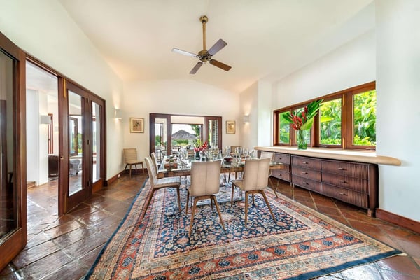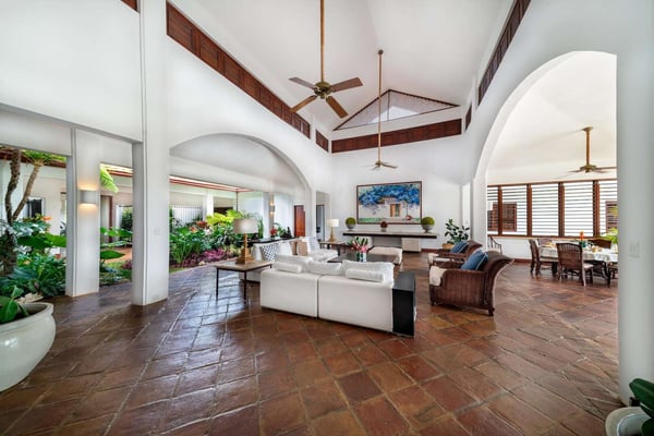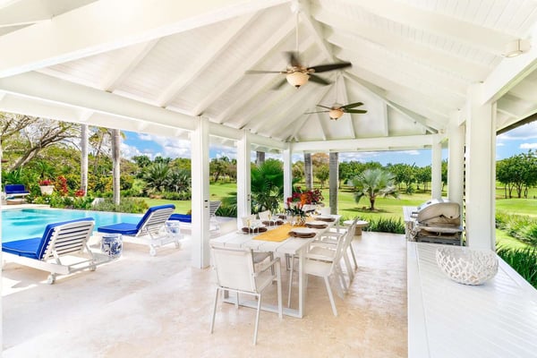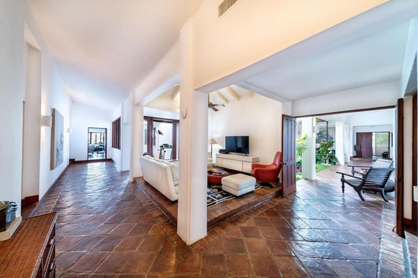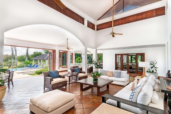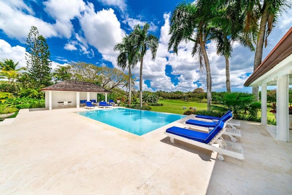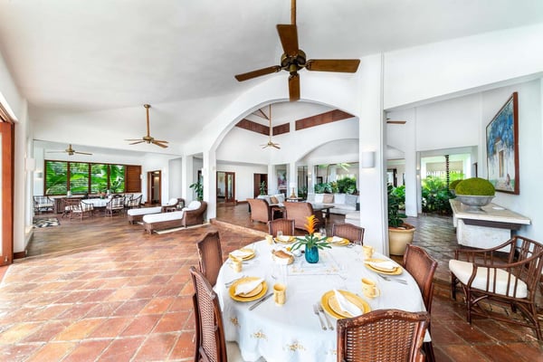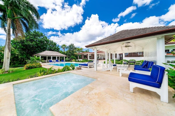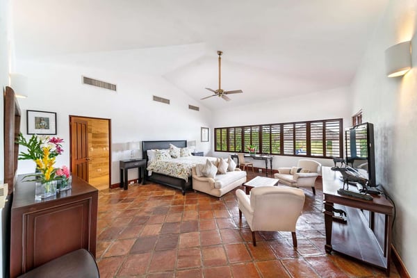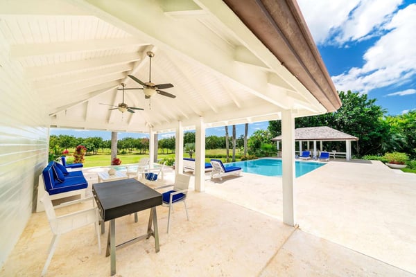 All guests must register with the Casa de Campo Concierge office, and for a small daily fee ($30 per adult per night & $15 per child per night), are granted access to resort areas and amenities. Casa de Campo Resort facilities and amenities include golf courses ($), the fitness centre ($), racquet center ($), restaurants ($) and bars ($). Contact Rental Escapes for more information about pricing. Hacienda Mallet is a charming Caribbean villa designed for comfort and relaxation, offering a perfect retreat in a serene and spacious setting. With its casually elegant style, this four-bedroom property invites guests to unwind and savor the beauty of its surroundings. The villa features expansive living areas ideal for spending quality time with family and friends. Guests can lounge by the swimming pool, soak in the heated jacuzzi, or enjoy leisurely meals in the outdoor dining spaces while embracing the warm Caribbean breeze. The large bedrooms provide a peaceful retreat, complemented by picturesque views of the La Romana Country Club Golf Course. Conveniently located just a four-minute drive from Minitas Beach, the villa offers easy access to the best of Casa de Campo. For a unique touch, guests can enjoy a complimentary ride on purebred horses, adding a memorable experience to their stay. For larger groups, the villa also offers a fifth bedroom, providing extra flexibility. Though it doesn’t have an en-suite bathroom, it ensures ample accommodation options for your group. Hacienda Mallet is a welcoming haven that combines casual Caribbean charm with thoughtful amenities for a truly relaxing getaway.