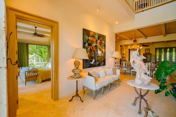 Guests staying within Puntacana Resort & Club will have access to all resort amenities and facilities. Resort amenities and facilities include two golf courses ($), two beach clubs ($), Six Senses Spa ($), restaurants ($), bars ($) and tennis centre ($). One of the most original properties of Corales, the exclusive community inside Puntacana Resort & Club. Corales 27 features lush gardens with pathways that take you to the different yards of the house, unique decoration, large spaces and an amazing view of the lake and the golf course. This villa includes full-service staff, which will allow you to take your mind of responsibilities and enjoy the luxurious resort lifestyle along with its many amenities. Featuring four bedrooms, a large pool area where you can either enjoy the sun or swim some laps, expansive terraces, BBQ and a gazebo with its own lounge area, dining table and bar, Corales 27 is one of the unique properties in the country. The Corales community features its own private beach, lakes and 18 holes of PGA Championship golf. The resort itself has 7 restaurants and bars, 27 more holes of premium golf at La Cana, 12 tennis courts of different surfaces, two beaches, a natural reservation, a marina, and many other amenities. Right outside the gates, you will find Puntacana Village, a small community that offers 8 restaurants, bars, shops, and a pharmacy while a few minutes away you can find Blue Mall with its collection of premium shops and restaurants.