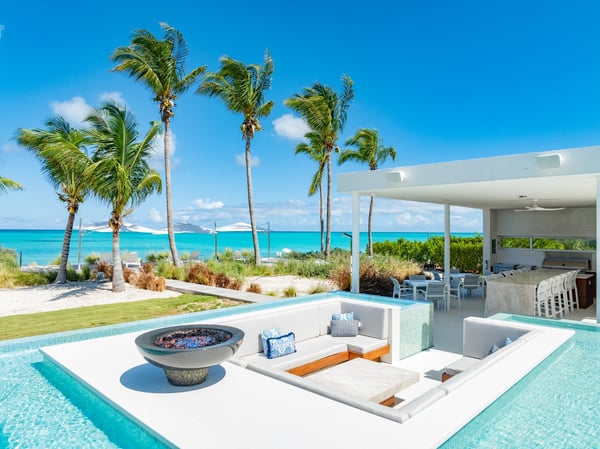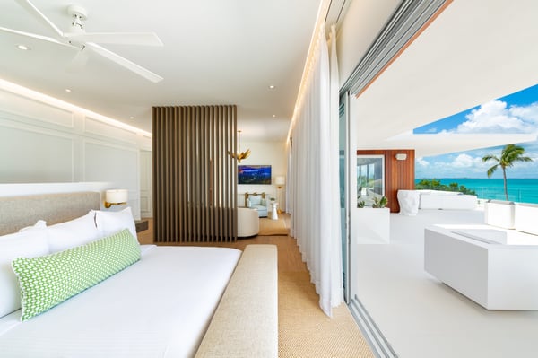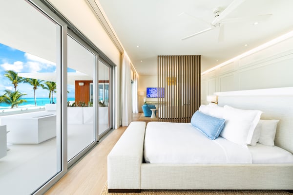 Nearby construction may result in noise disturbances. For further details on how this might affect your stay, please reach out to a villa specialist. Construction is expected to last until the beginning of 2028. On arrival at Sole E Mare, prepare for a sharp intake of breath as this captivating and vibrant Grace Bay property reveals itself. Reminiscent of a sleek 1950s-style Miami beachfront estate, this handsome two-storey villa sits proudly on 200ft of pristine island beachfront with mesmerizing views. Ten individually decorated suites can accommodate up to 20 guests, while contemporary architecture and styling offer impressive living and entertaining options. An abundance of natural light illuminates gleaming white interiors, while pops of colour and thoughtful styling add playful personality to the tasteful, neutral design scheme. Geometric lines are offset by the warmth of dark wood, whilst eclectic accents in shades of acid brights and muted pastels add interest. Outside, an immense 100ft sparkling infinity pool monopolizes the views on this superb stretch of Grace Bay beach. An outdoor spa, pickle ball, ping pong and basketball facilities, plus state of the art gym and hair salon with manicure/pedicure station, are a luxurious touch, ideal for prepping for sunset soirees. Combined with a host of living, dining and social spaces, beachside firepit and ocean deck, Sole E Mare is the ultimate location for Grace Bay island entertaining.