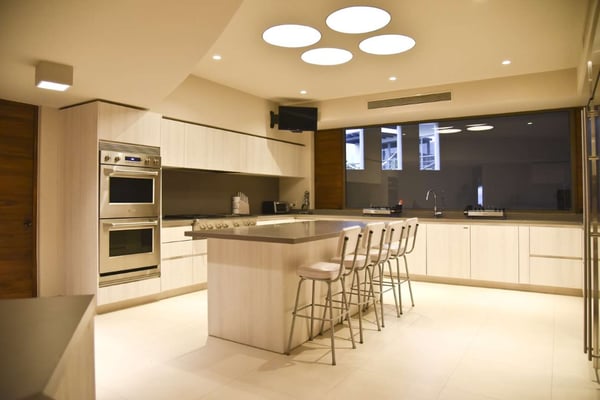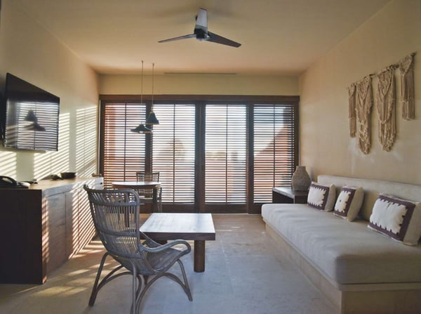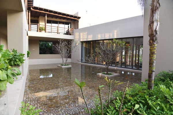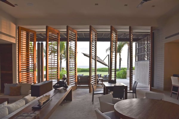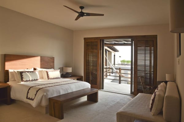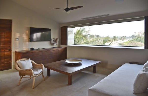 Casa Ventana can comfortably accommodate up to 22 guests in its 11 bedrooms, including a primary bedroom with a king-size bed and its own living room with TV and Apple TV. The main house features five luxurious bedroom suites with private en-suite baths and breathtaking ocean views, three with king-size beds and two with double beds. There is also a family room with TV and Apple TV, as well as a private playground for children. A short walk from the main house is a guest house with two suites, each with two bedrooms (one with a king-size bed and the other with two doubles), a bathroom, and a small living room with satellite TV and Apple TV. There is also a bedroom with a king-size bed and a view of the golf course. You can hear the soothing sound of the ocean as you relax at Casa Ventana.