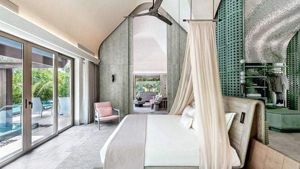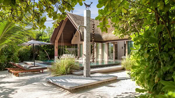 Offering toes-in-the-sand adventures, these island sanctuaries are ideal for those seeking the sunny side of life in the Maldives. With sea, sun and sky all around you, there is little reason to leave your private wellbeing retreat. Featuring a 35 square metre infinity pool, rain shower and outdoor sunken bathtub, the grand beach villa can accommodate up to three guests.