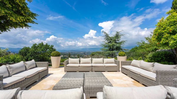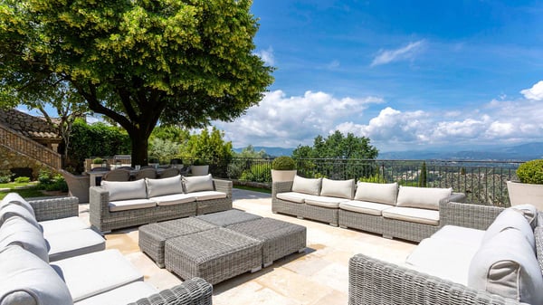 This property is a beautiful fully renovated historic estate with six bedrooms, seven bathrooms, located right in the old village of Mougins, only a few steps away from many restaurants and galleries. Extensive landscaped gardens with a heated swimming pool, amazing views over Grasse and the valley, a pool house with fireplace, fire pit, bocce court, outdoor kitchen, Barbecue, a four-car garage, and is protected by a high-end security system. Indoors, the Villa offers a large living room, a family room and media room, as well as a lower-level and upper-level kitchen. All six bedrooms have brand-new marble bathrooms with bath and/or large walk-in showers. Every room is equipped with a television and high-speed internet.