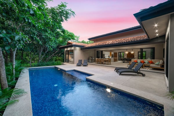 Construction is taking place nearby and may create some noise issues. Contact a Rental Escapes villa specialist for more information about how this may impact your stay. Welcome to Casa de Los Monos, this Home offers a unique jungle experience in one of Hacienda Pinilla's most exclusive gated communities, with a private jungle pool, personalized concierge service, and exclusive access to a stunning beach club just minutes away. Standout Features: • A private pool nestled in the heart of the jungle. • The primary suite boasts an outdoor jungle bathtub for a truly unique experience. • Access to the on-site Los Almendros community gym. • Exclusive access to a beautiful beach club just minutes away • Nearby options for tennis, golf, and other outdoor fun. • Only a few minutes drive to the beach for surfing, swimming, or relaxing.