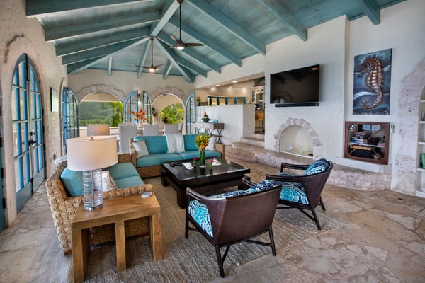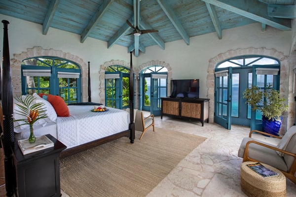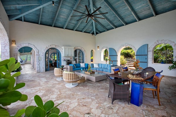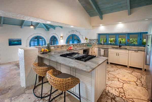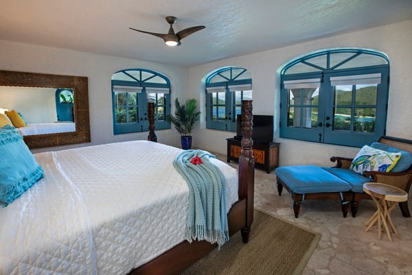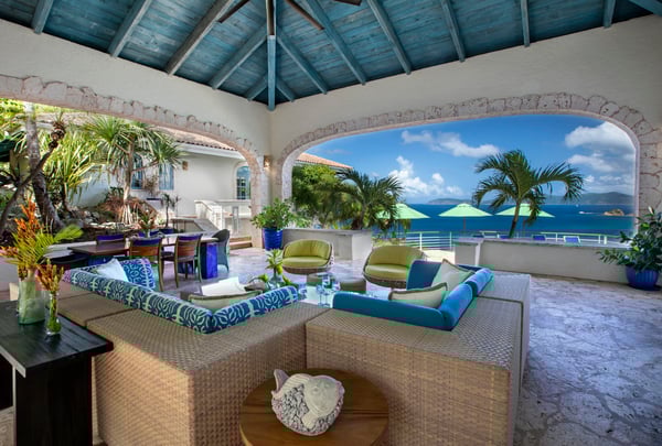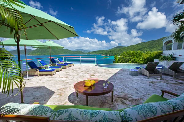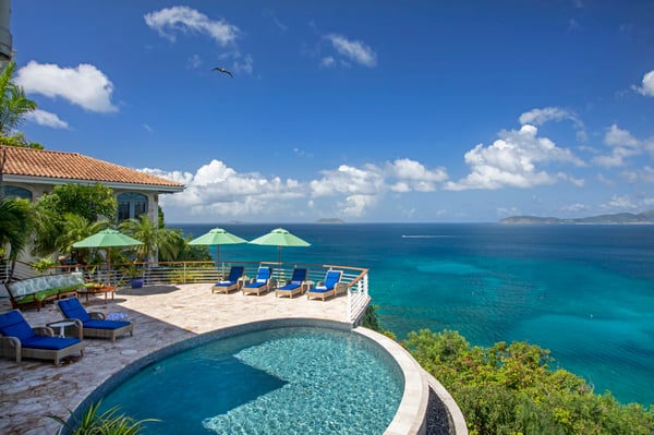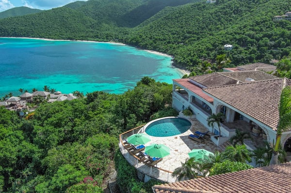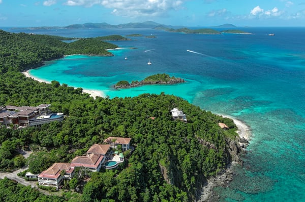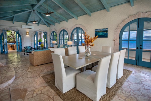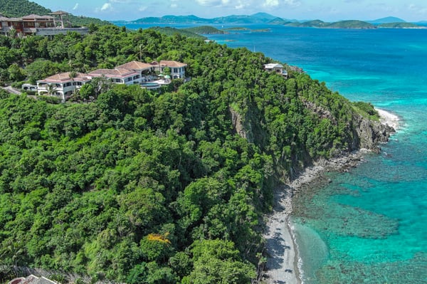 CliffHouse is located in lower Peter Bay, a gated neighborhood on the North shore of St. John. It is 12,000SF and sits on 3 acres directly next to the National Park for ultimate privacy. At 100 feet up from the shoreline you can hear the waves crashing on the rocks all day and night. From every window & door are incredible views of Jost Van Dyke, Tortola, Cinnamon & Peter Bay beaches. In the mornings you have a front row seat to sunrises. The beautiful lanai between the primary and living room pods offers shade all day long. You will find a pool (salt water system) and jacuzzi with sweeping views from all angles. There are four bedrooms to consist of three kings and one room with two queen beds. All have en-suite bathrooms and there is a half bath off the kitchen. Two of the king bedrooms have outdoor sitting areas to take in the views from your private suite. All bedrooms, pool deck & gym have JBL portable speakers. It is a pod style layout with AC in all pods. The WIFI is very strong over the entire property including the pool deck. There is a large well stocked gym where even a top athlete could train in. Our virtual personal trainers can create custom workouts based on our equipment. There is an array of board games, corn hole and 10 beach chairs. It's about a 5 min walk to the sandy beach of Peter Bay where there is great snorkeling. The walk is downhill on the way so uphill on the way back. If that doesn't for someone then they can take the short 30 second drive down to the beach path where there is an area for parking. Then it's a flat walk to the beach. It is about a 10-15 minute drive to Cruz Bay where all the shopping and restaurants are located.