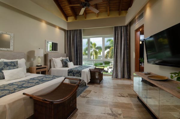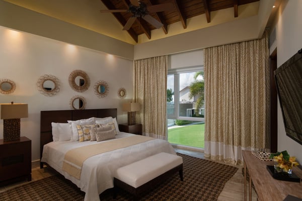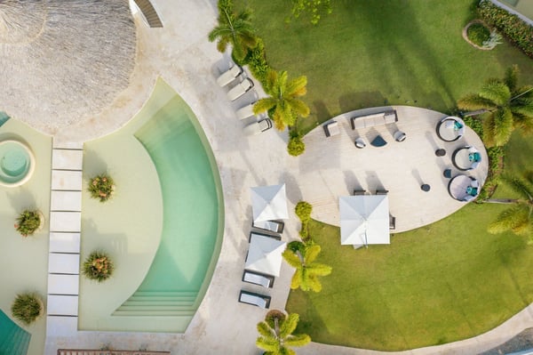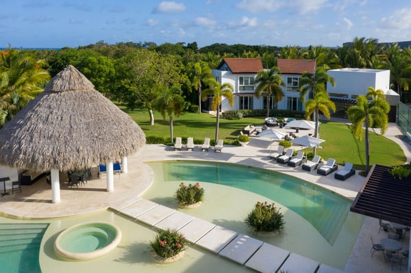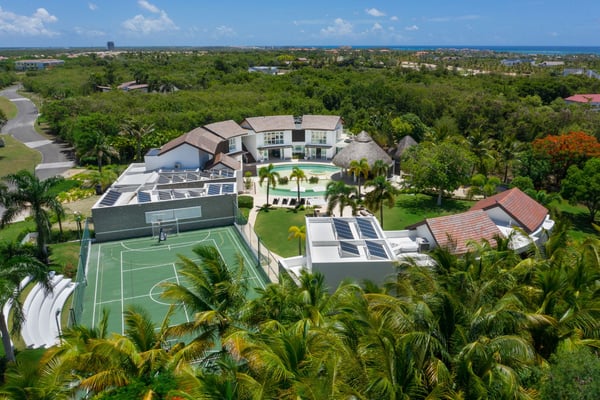 Guests staying within Cap Cana will have access to all resort amenities and facilities. Resort amenities and facilities include a golf course ($), spa ($), restaurants ($), bars ($), fitness centre ($) and tennis centre ($). Welcome to the top resort-style luxury villa situated in the ultra-exclusive community of Cap Cana behind the prestigious gates of the Punta Cana Resort & Club in the Dominican Republic. This soaring, two-story sprawling villa is the summit of upscale living, boasting three separate swimming pools, a sports court, outdoor kitchen under a covered palapa, indoor gym, massage room, cigar room, games room, and eight luxuriously-appointed bedrooms with spa-like ensuite bathrooms. Live like royalty in one of the most highly-sought-after destinations on the planet to vacation, while a professional staff caters to your every need. Lounge around poolside with your favorite frozen cocktail, or work up a sweat at the indoor squash court before enjoying an alfresco meal under a moonlit sky with friends and loved ones, the choice is yours. Surrounded by lush tropical gardens, this semi-circular estate provides an inherent sense of serenity and tranquility to its visiting guests. The collapsible glass walls add a sense of free-flowing ease, carelessly wedding the outdoor spaces with the indoor ones. Take a walk and enjoy the indigenous wildlife, which includes towering coconut palms, palm fronds, and color flowering plants that immerses you in a state of zen and relaxation, or take up any number of activities right in the comfort of your very own luxury villa. Indoors, you'll find long flowing curved spaces, vaulted wood-beam-lined ceilings, and cozy, designer-furnished luxury for the perfect mixture of unpretentious style and upscale class. Enjoy a round of billiards in the game room, or watch your favorite movie in the media room with a semi-circular plush sofa that mimics the curves of the outer estate walls. Polished wood floors, natural stone tiling, and perfect evening lighting helps to round out the idyllic nature of this estate. As a guest, you'll feel like you're staying in one of the world's finest hotels as the property comes completely serviced and staffed. Let the private chef cook up a gourmet meal for your group, allowing the butler to set the table and perfectly deliver the meal, akin to an experience at a fine dining restaurant. During your stay, housekeepers help to tidy up behind you while the villa manager and concierge allow you to book nearby activities and excursions effortlessly. Nearby, you'll find the Jack Nicklaus-designed Punta Espada golf course, or take a trip to nearby Juanillo Beach and enjoy the white-sandy shores and shimmering topaz waters of the Caribbean.