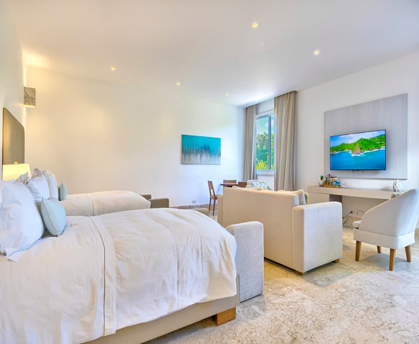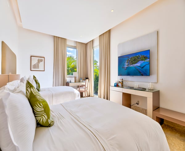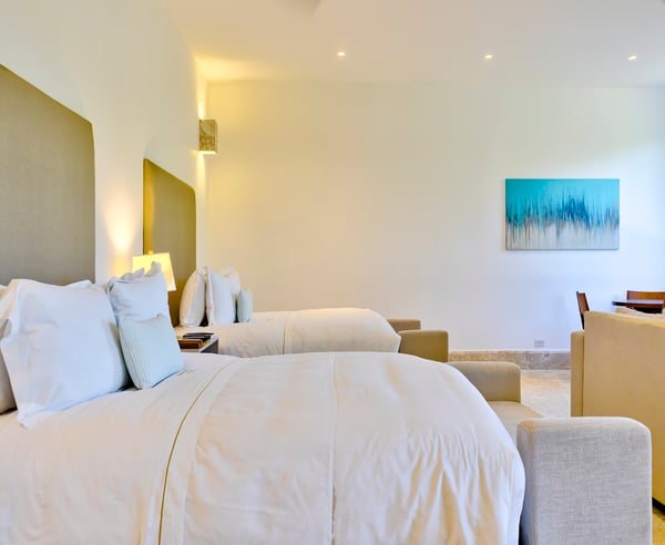 Nearby construction may result in noise disturbances. For further details on how this might affect your stay, please reach out to a Rental Escapes villa specialist. Nestled in the exclusive community of Cap Cana is Eden Roc, a luxury beach resort along the Caribbean Sea. Guests will have access to all Eden Roc resort facilities including a lagoon-style swimming pool, restaurants ($), Eden Roc Beach Club ($), beach chairs and towels. This exquisite villa beckons families and friends seeking the epitome of a Caribbean getaway. The spacious common areas create a relaxed ambiance that captures the essence of the Caribbean.